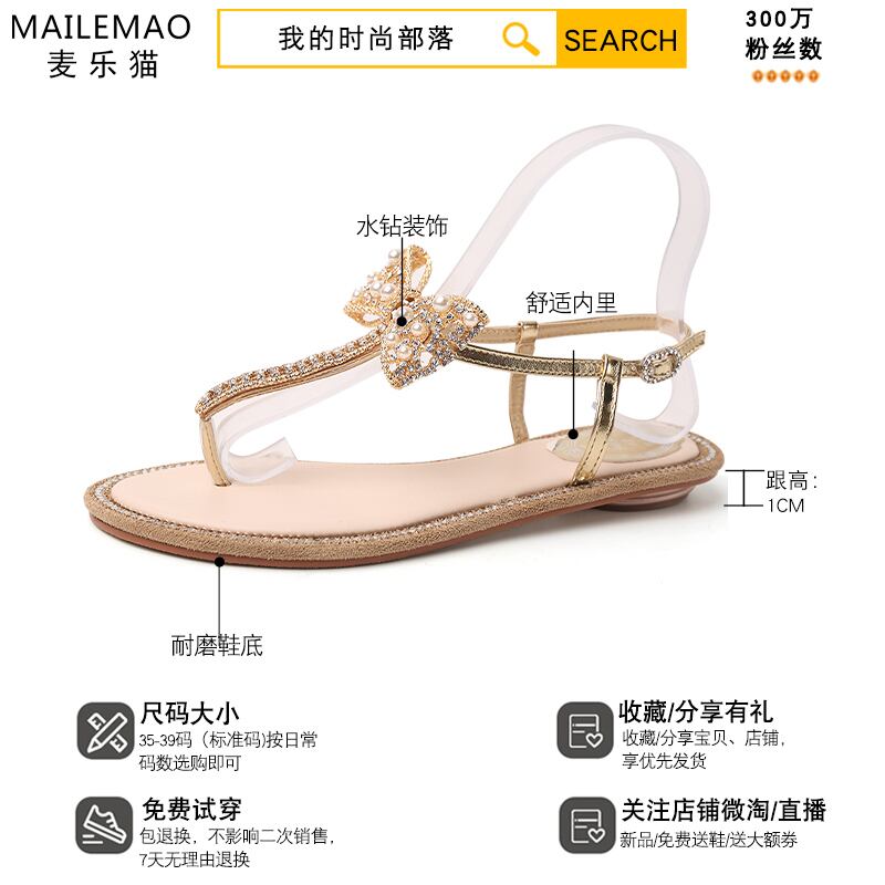サンダル女性2020新しい夏の個性野生の妖精風ネット赤いラインストーンクリップつま先フラットボトムローマの靴の潮 部族の婦人靴7516562