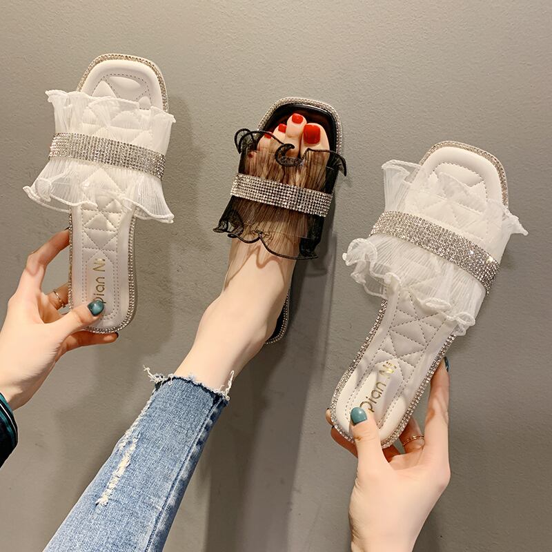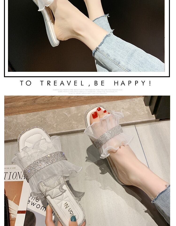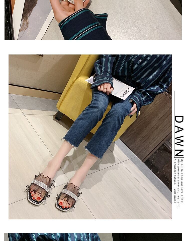サンダルとスリッパ女性2020春の新しいファッション野生のインオープントゥフラットボトム妖精スタイルの単語の女性スリッパ 部族の婦人靴8682172