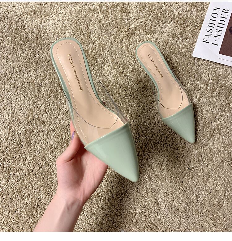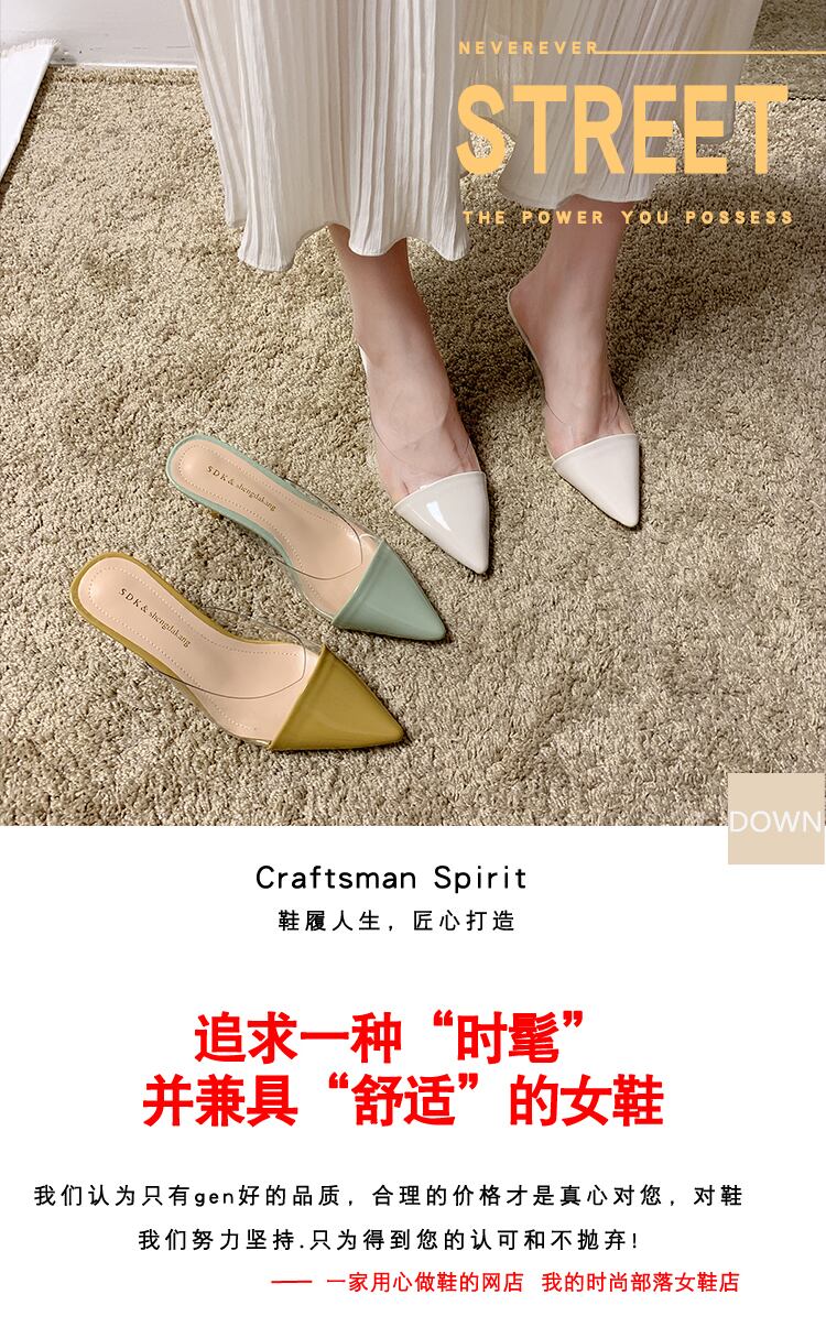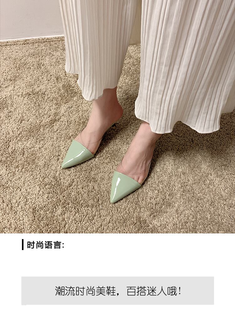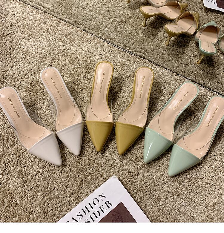 包頭ハーフスリッパ女性は2020年の新しい夏のファッション指摘怠惰なスレンダーヒールノンスリップ女性ミュールを着用 部族の婦人靴7895678