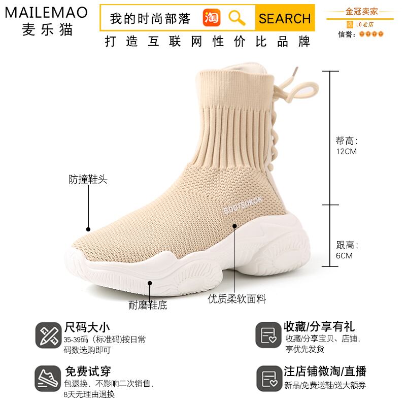 弾性ハイトップブーツソックス靴女性2019秋バージョンのネット赤カジュアルショートブーツスポーツシューズ女性増加女性の靴 部族の婦人靴3182731