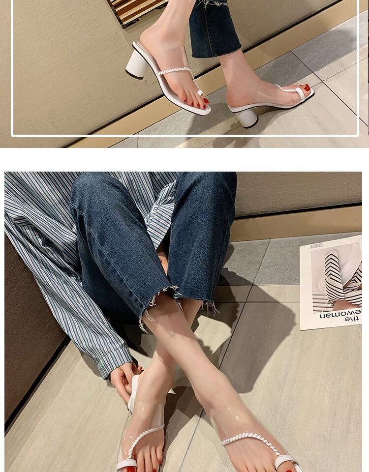 ネットレッドスリッパ女性はファッション2020新しい野生の透明な厚いヒールのつま先のドラッグサンダルドラッグ女性のインスタイドを着用します 部族の婦人靴4630901