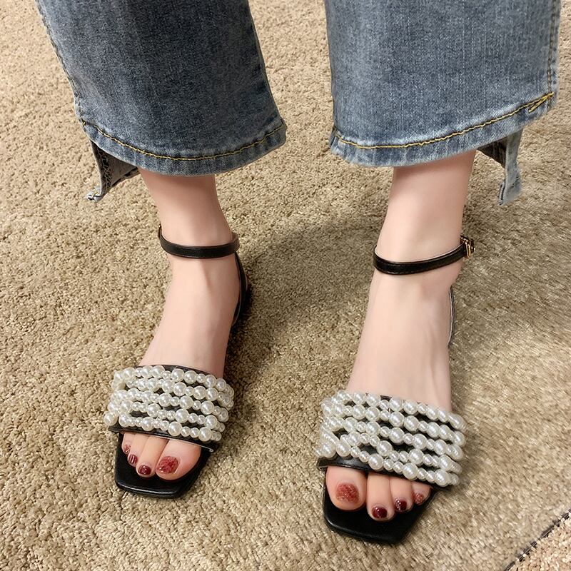 2020新しいサンダル妖精風夏スリッパ女性はインサンタイドワイルドネットレッド厚いパールサンダルを着用します 部族の婦人靴8100906