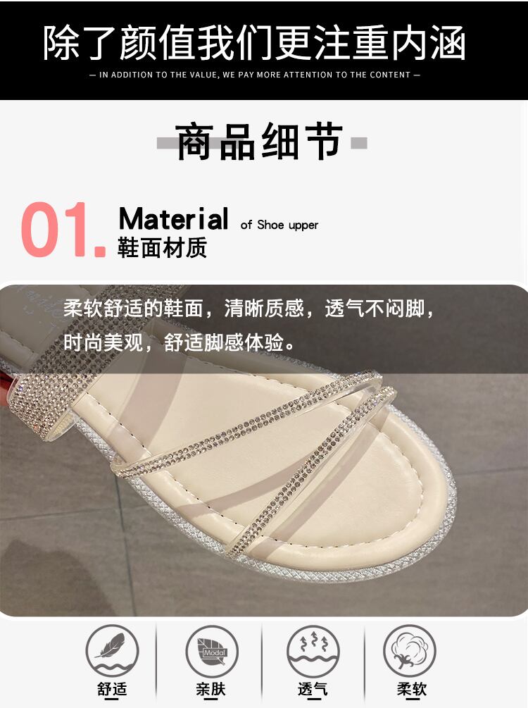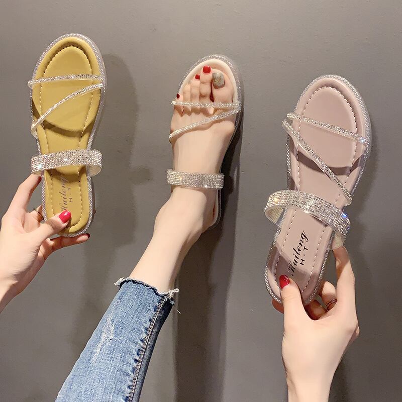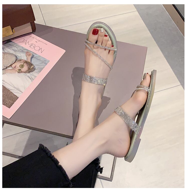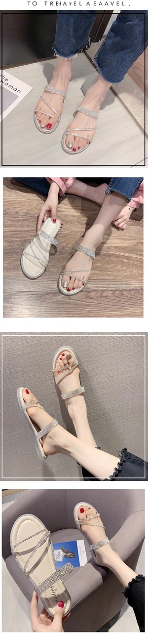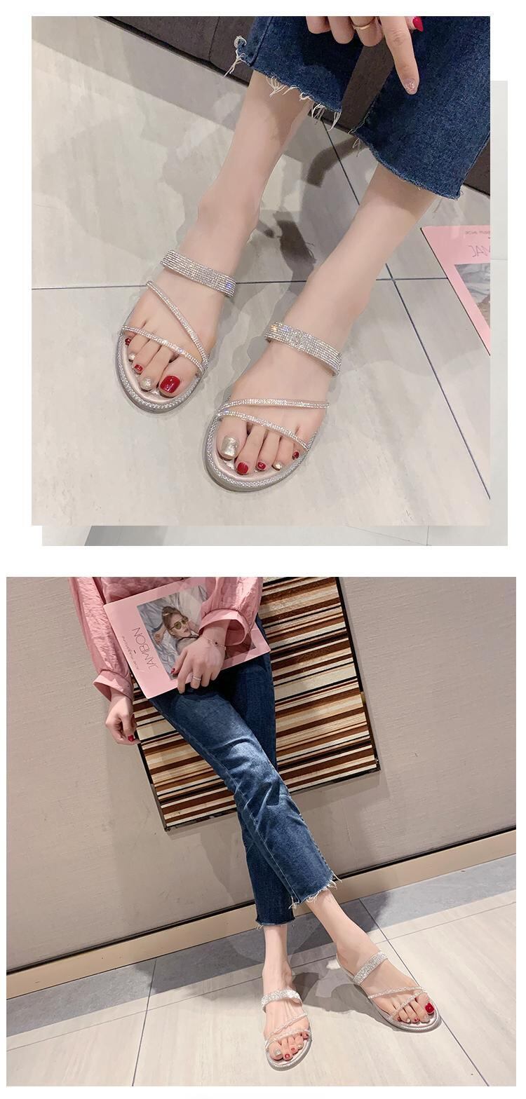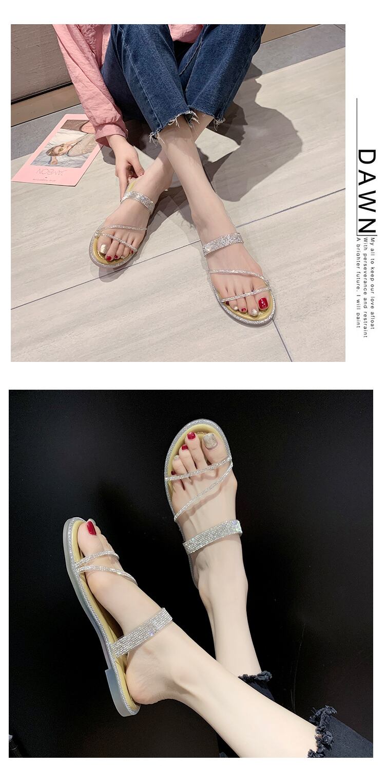 女性のサンダルとスリッパは2020年夏のワイルドネットレッドインタイドラインストーンフラットボトムローヒールフラットドラッグの新しい夏バージョンを着ています 部族の婦人靴8991703