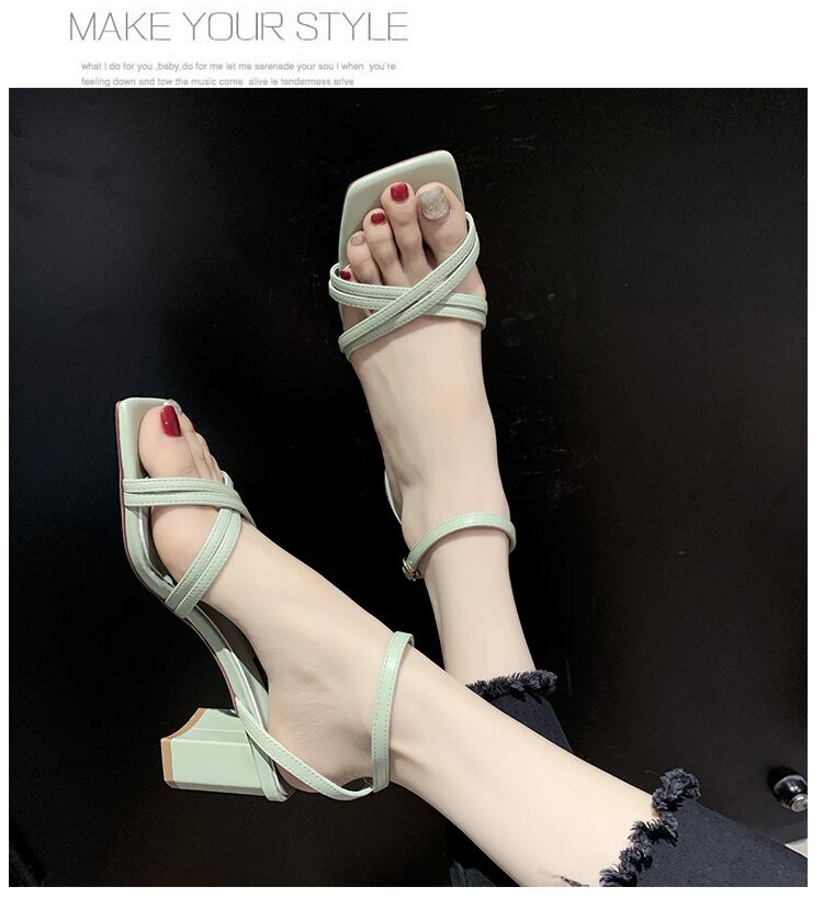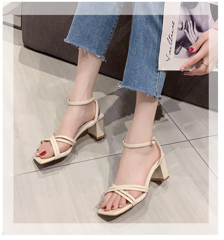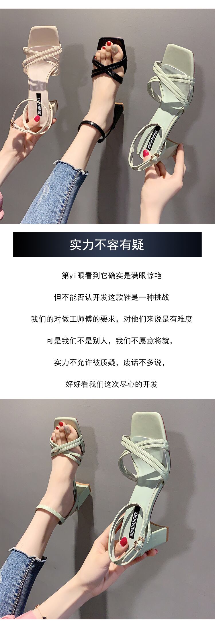 サンダル女性の夏の妖精スタイル2020新しい野生と厚いおしゃれな女性の靴ネット赤い単語薄いベルトハイヒールの女性 部族の婦人靴7787074