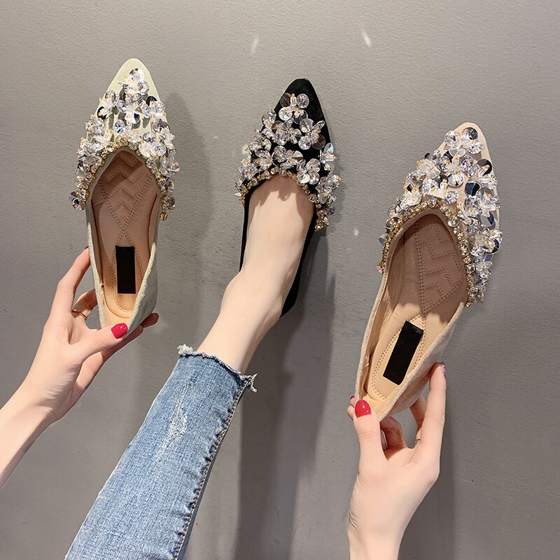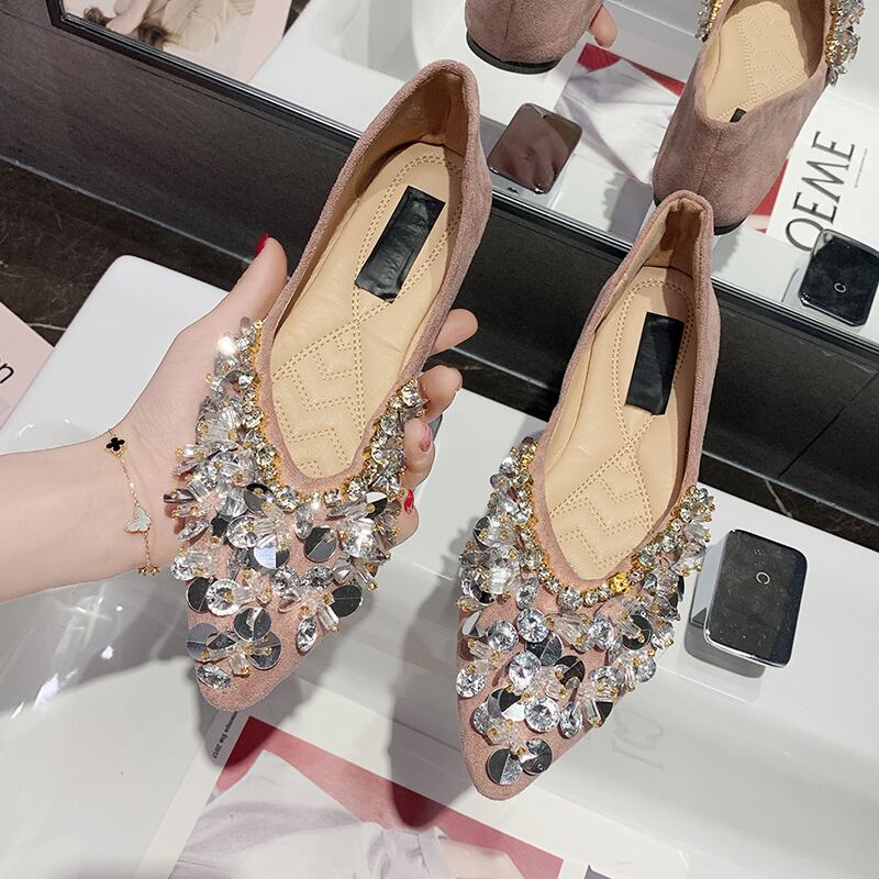 先のとがったシングルシューズ女性2020年夏の新しいバージョンのラインストーンファッションワイルドネット赤い妖精スタイル浅い口フラットスクープシューズ 部族の婦人靴7477282