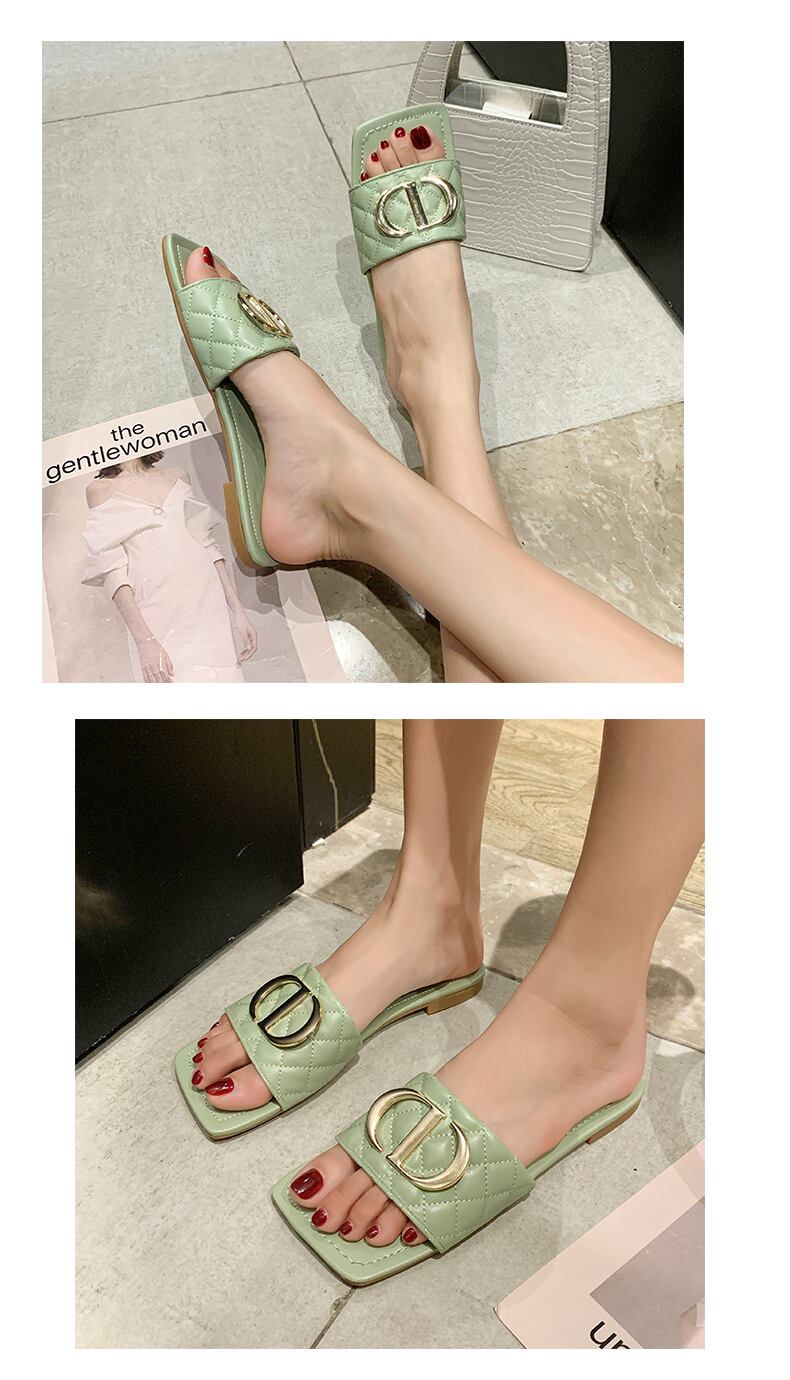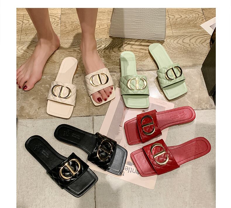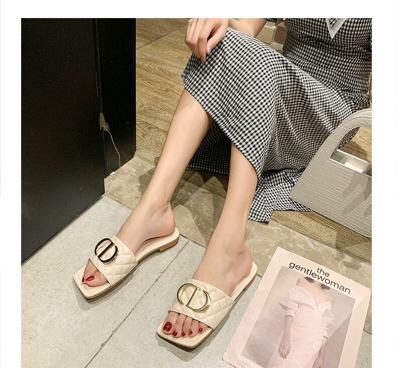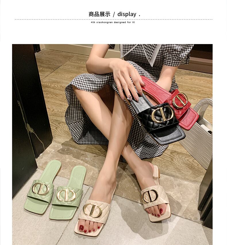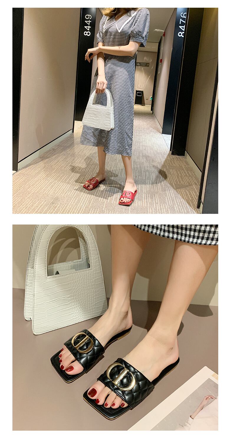 ネットの赤いサンダルとスリッパの女性は2020年の新しいファッションins潮フラットボトムスクエアヘッドソフトボトムビーチサンダルを着用します 部族の婦人靴3023443