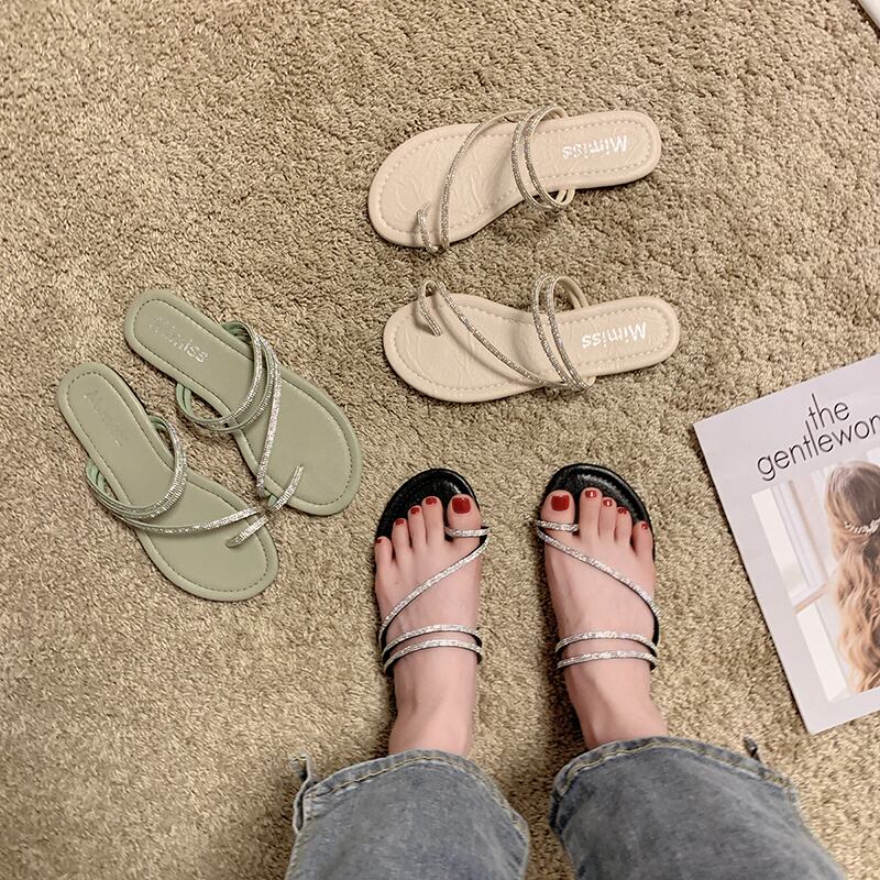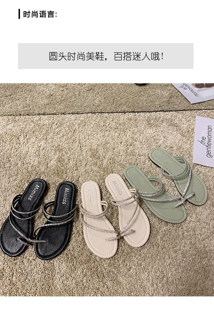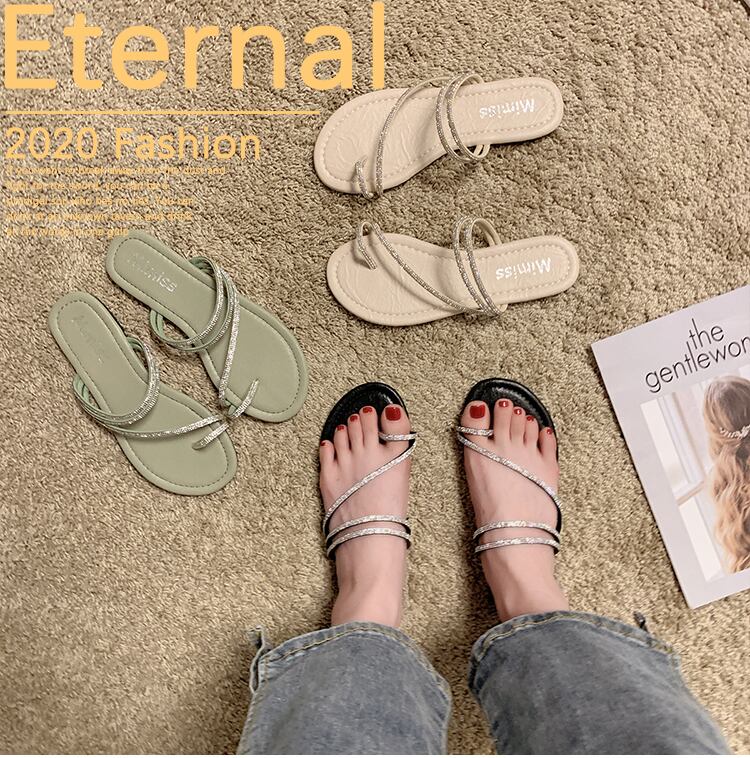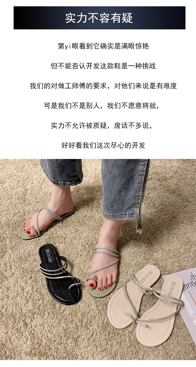 スリッパ女性は2020夏の新しいinsバージョン野生ラインストーンセットつま先フラットボトムサンダル休暇ビーチモップを着用します。 部族の婦人靴2131693
