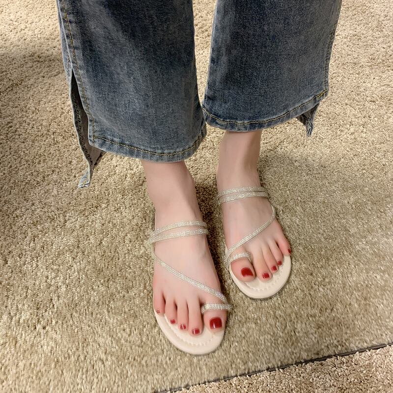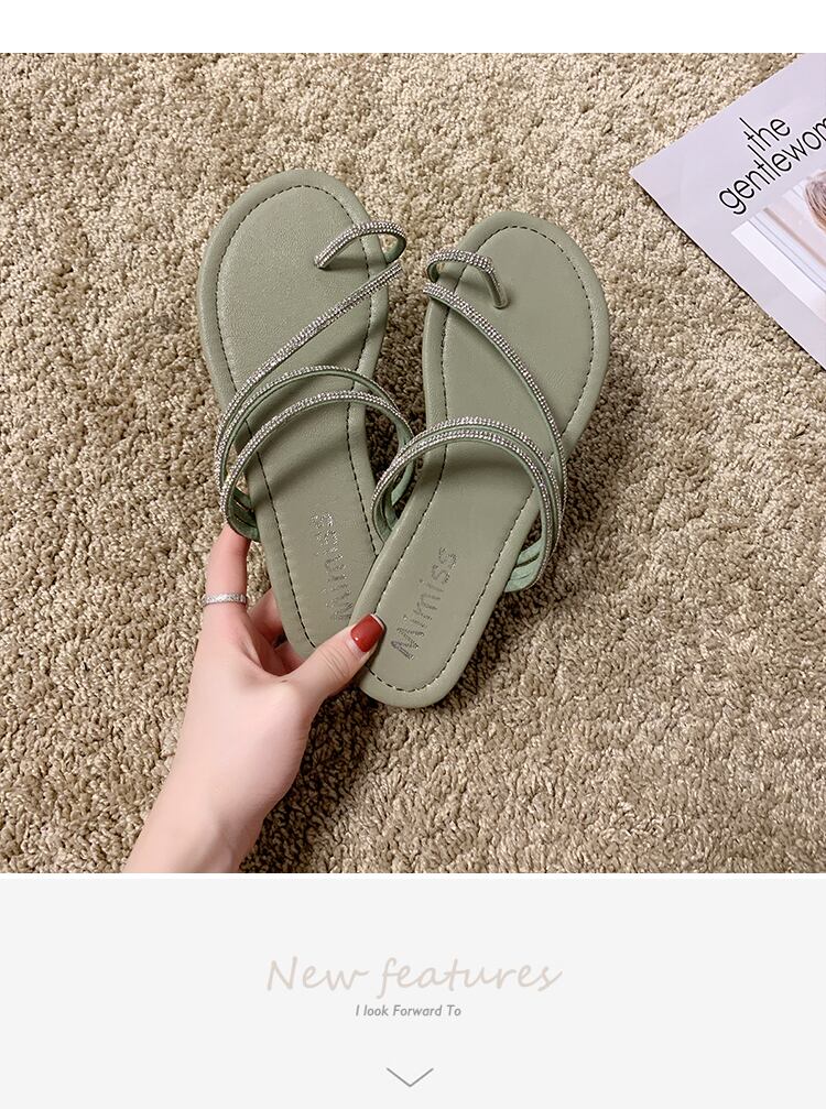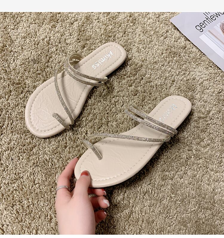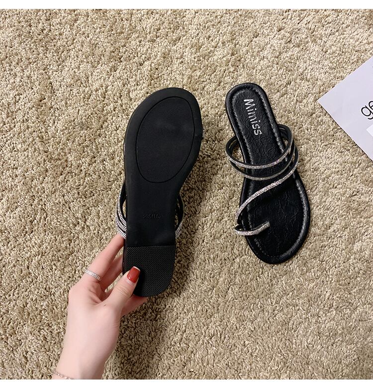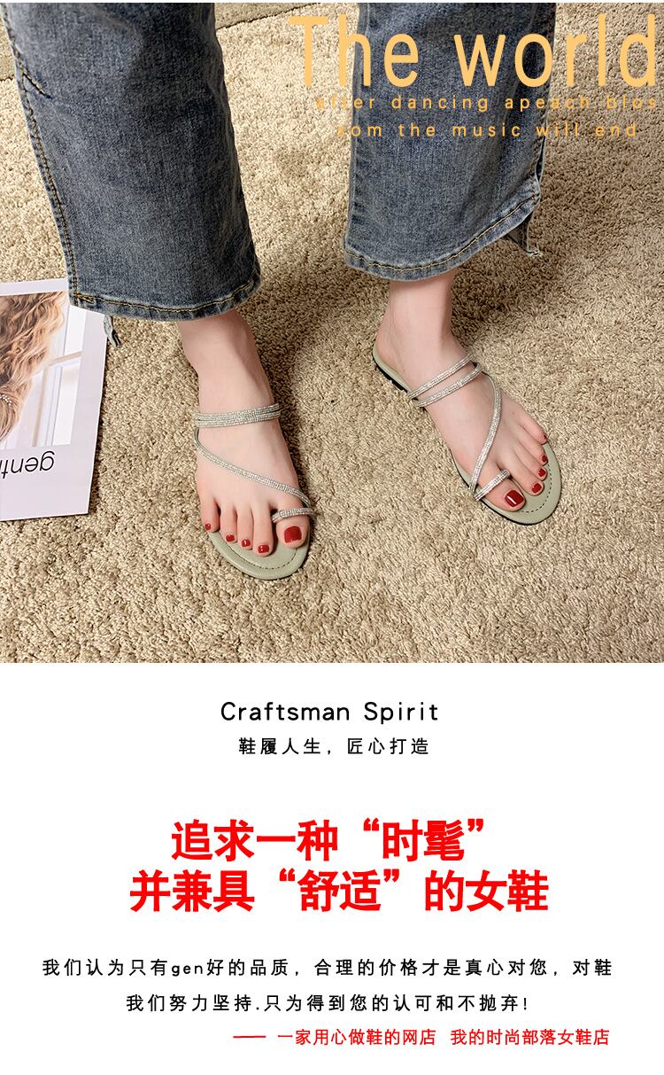 スリッパ女性は2020夏の新しいinsバージョン野生ラインストーンセットつま先フラットボトムサンダル休暇ビーチモップを着用します。 部族の婦人靴2131693