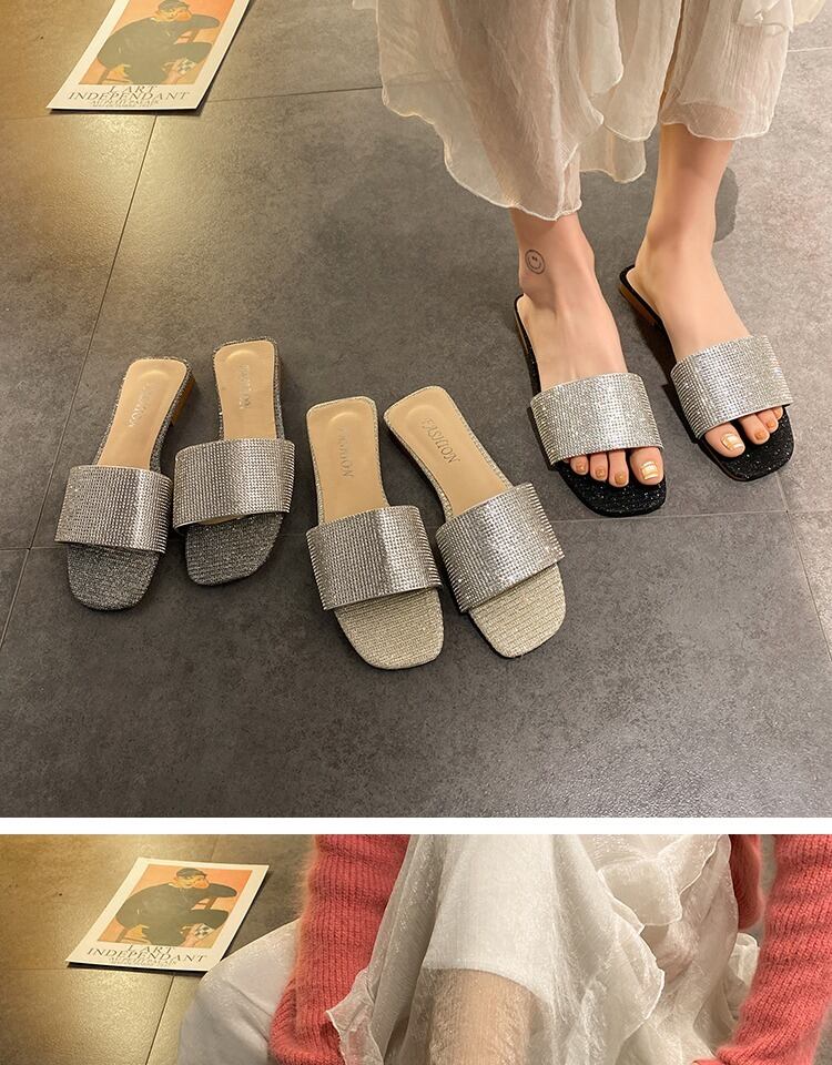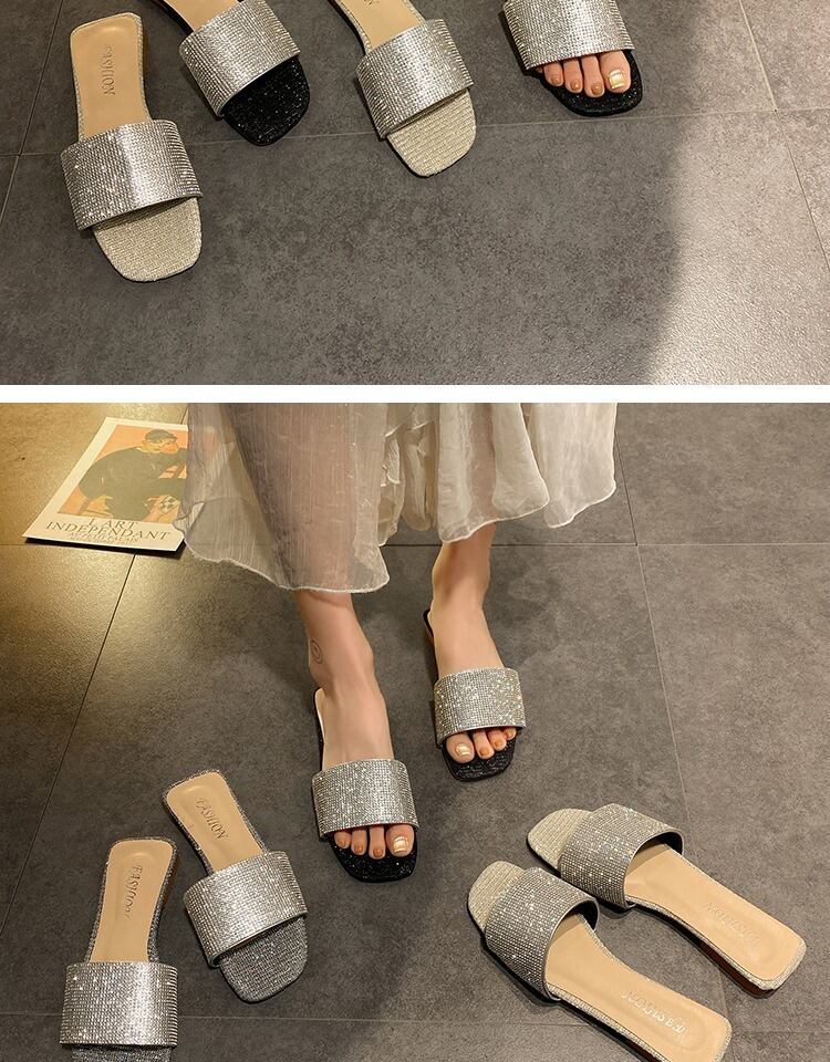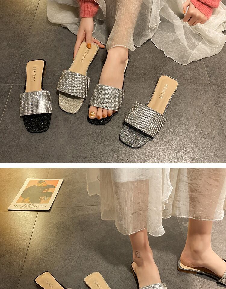 一言ドラッグ女性の摩耗2020春新しいファッション個性オープントゥ妖精風フラットボトムラインストーンサンダルとスリッパ 部族の婦人靴9842899