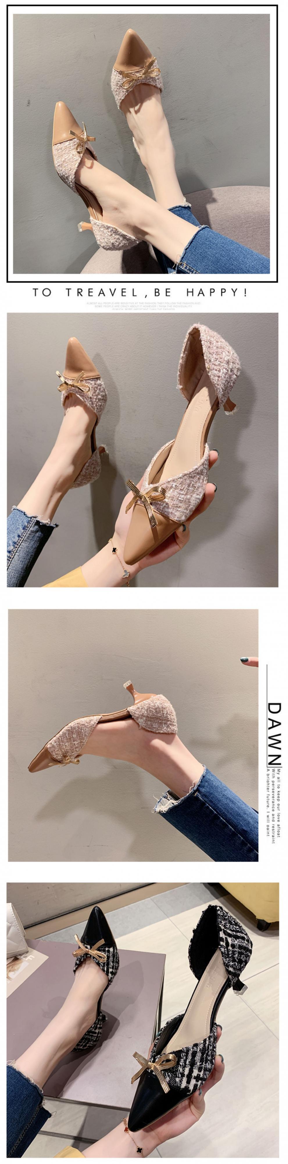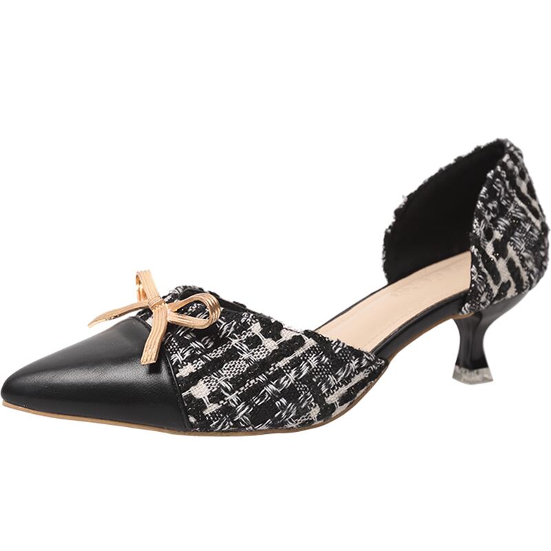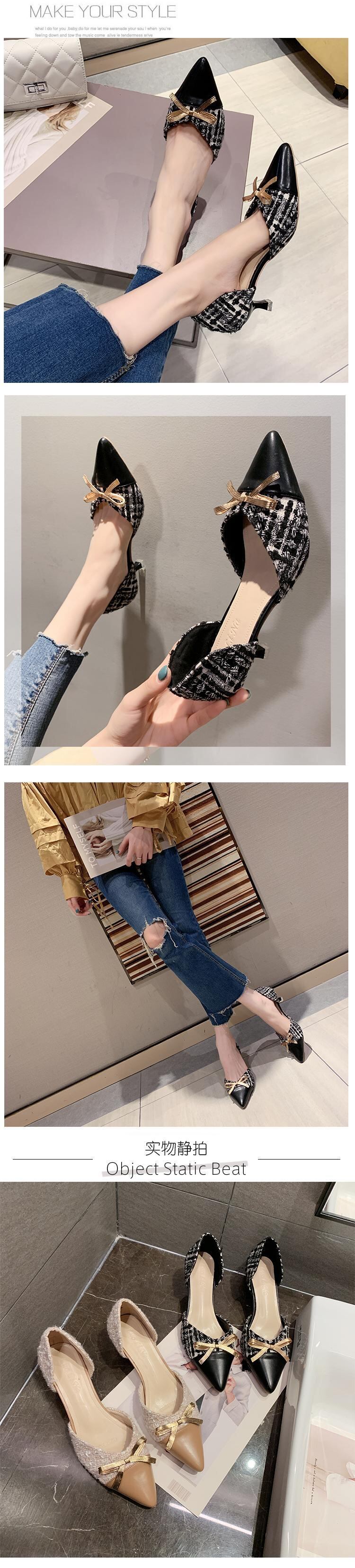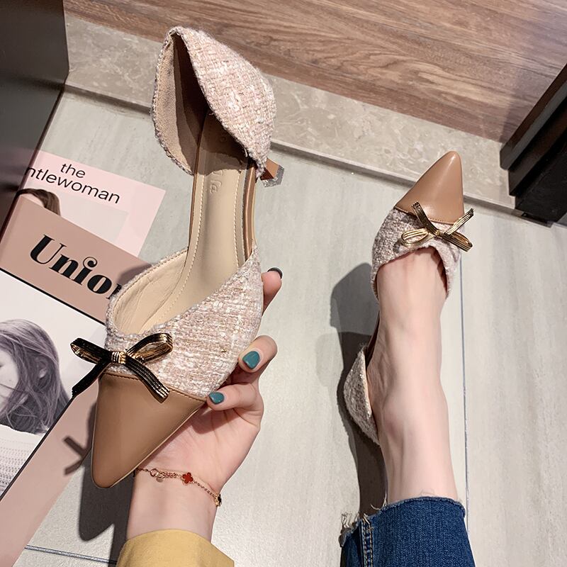 先のとがったシングルシューズ女性2020年夏の新しいバージョンの弓野生の野生の口ネット赤い妖精スタイルスティレットヒール 部族の婦人靴7731810