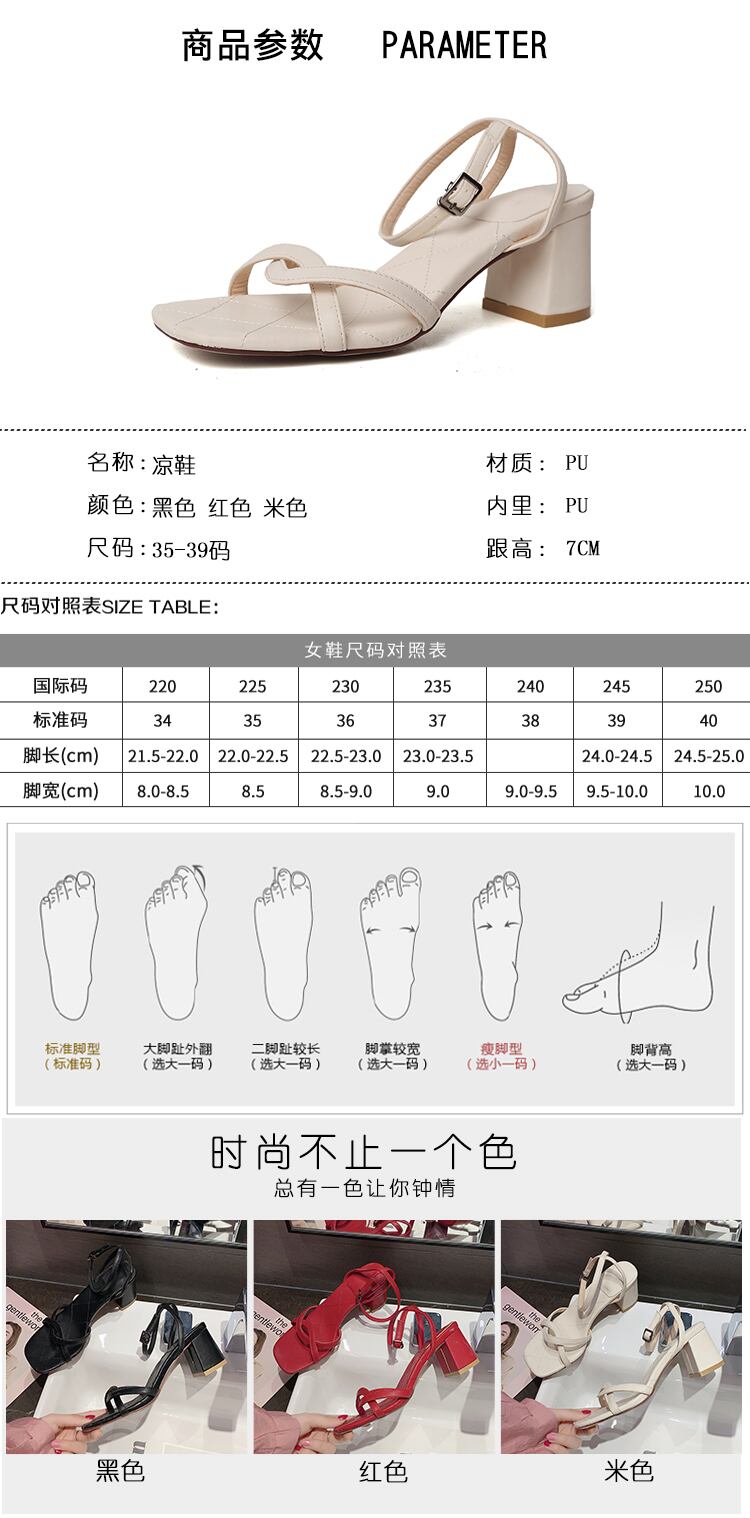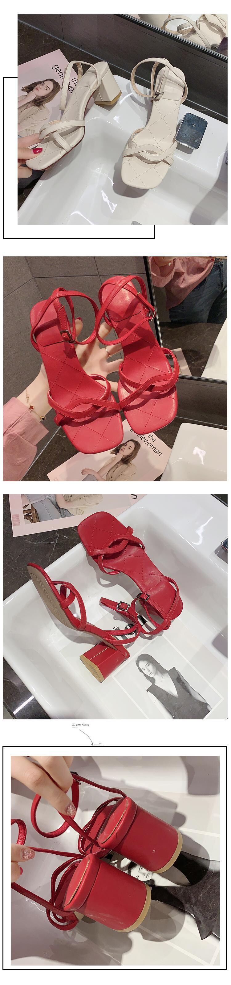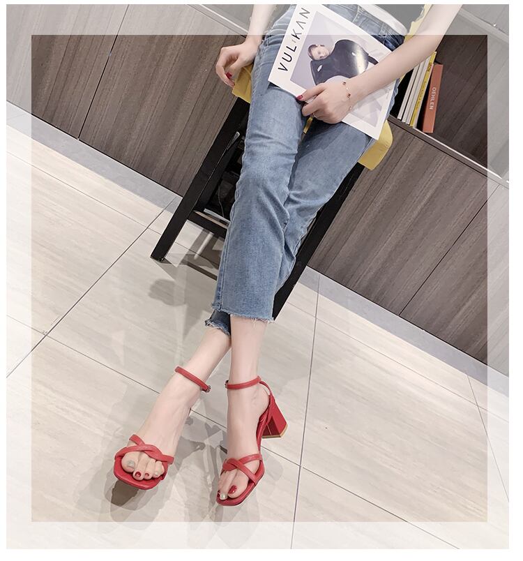 厚いヒールのサンダル女性2020夏の新バージョンスクエアヘッドワイルドオープントゥネットレッドフェアリースタイル 部族の婦人靴5577419