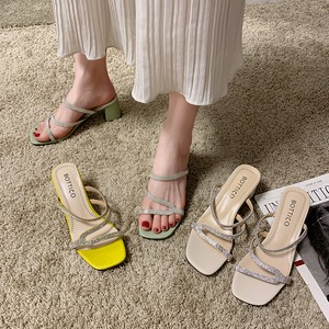 2020新しい夏のファッションラインストーンの厚い新鮮な単語サンダル女性ネット赤い野生のスリッパ 部族の婦人靴9726988
