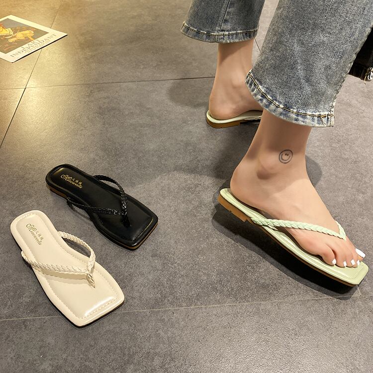 スリッパ女性insタイド2020新しいファッション野生の夏のクリップつま先ソフトボトムネット赤フラットカジュアルフリップフロップ 部族の婦人靴2666605