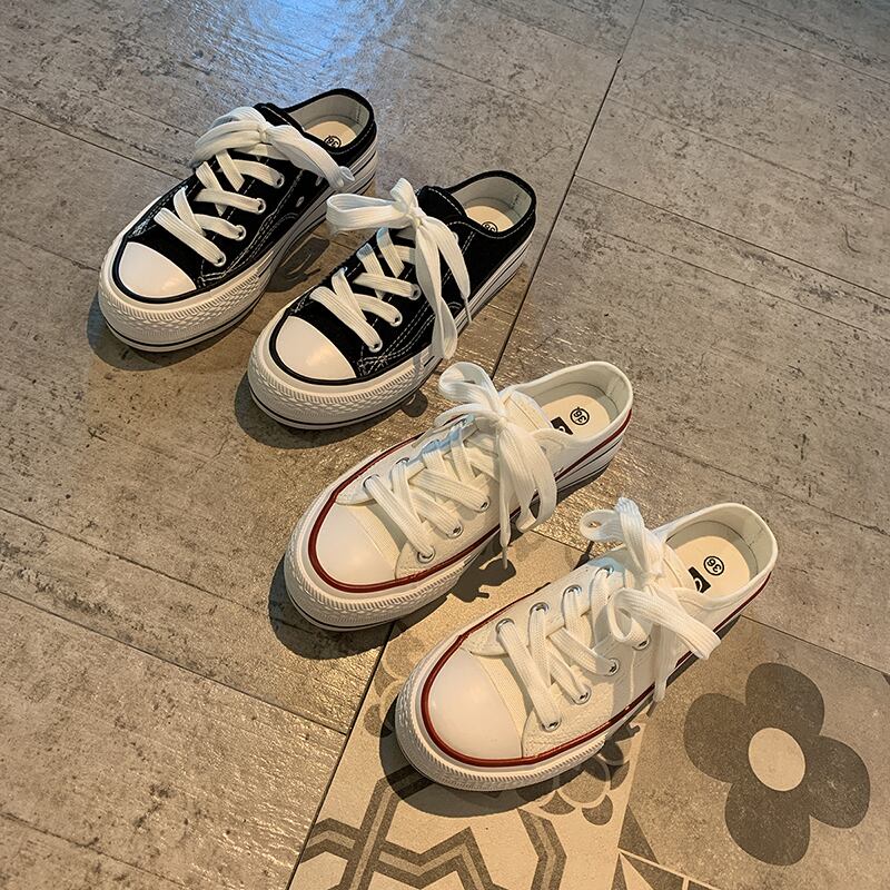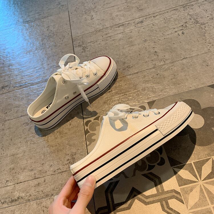 小さな白い靴女性2020新しい春と夏の包頭半ドラッグキャンバスシューズ学生野生ネット赤いボードシューズイン潮 部族の婦人靴4541715