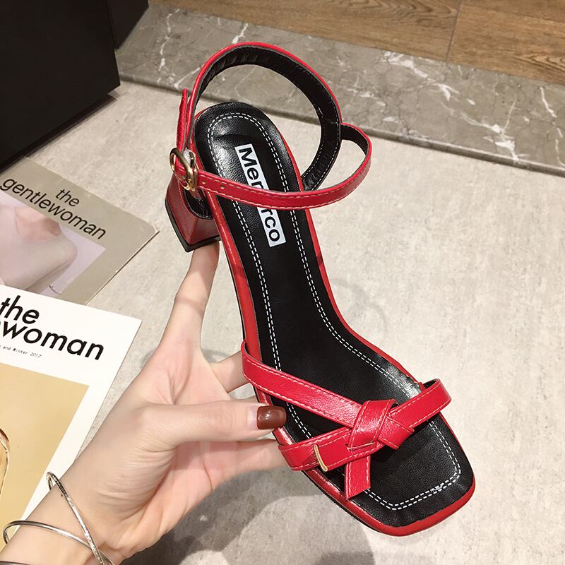 フランス語でレディースサンダル2020夏の新しいスタイルにワイルドネットレッドイン潮厚いヒール 部族の婦人靴1757843