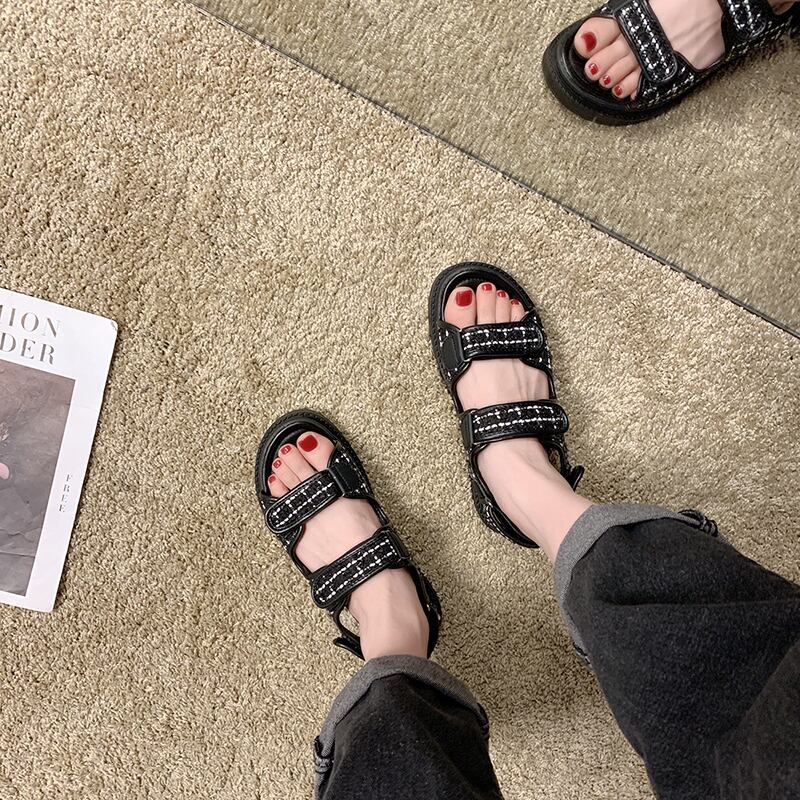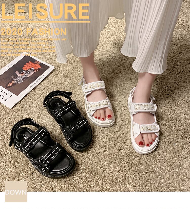 スポーツサンダル女性2020年夏の新しいinsネット赤野生オープンつま先ベルクロ学生カジュアルフラットシューズ潮 部族の婦人靴3154534