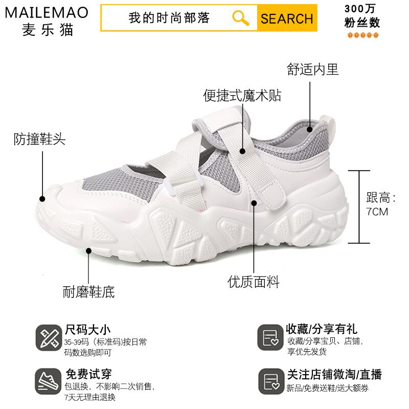 スポーツシューズ女性の夏2020新しい中空通気性の厚い底のファッション野生のサンダル女性insタイド包頭カジュアルシューズ 部族の婦人靴3034226