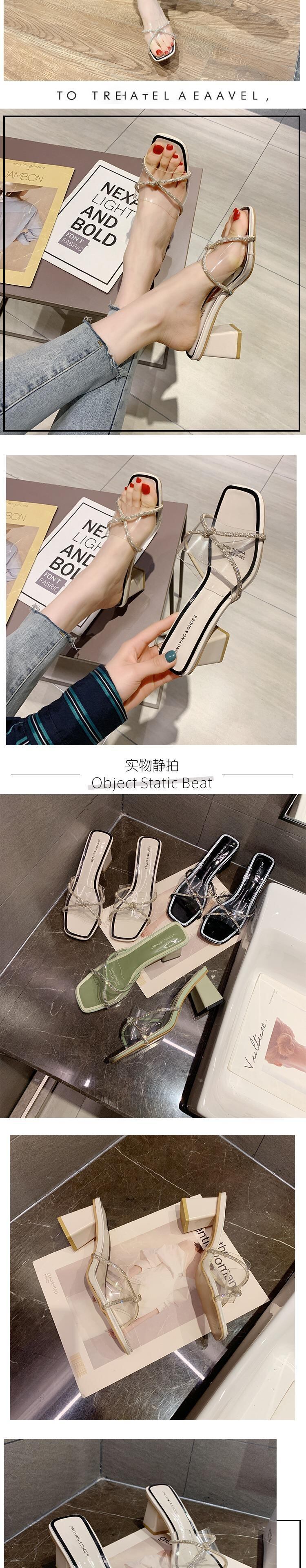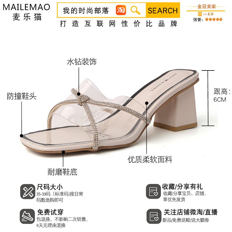 スリッパ女性夏2020新しいファッションワイルドネット赤オープンつま先ラインストーン妖精スタイル厚かかと潮 部族の婦人靴1595646