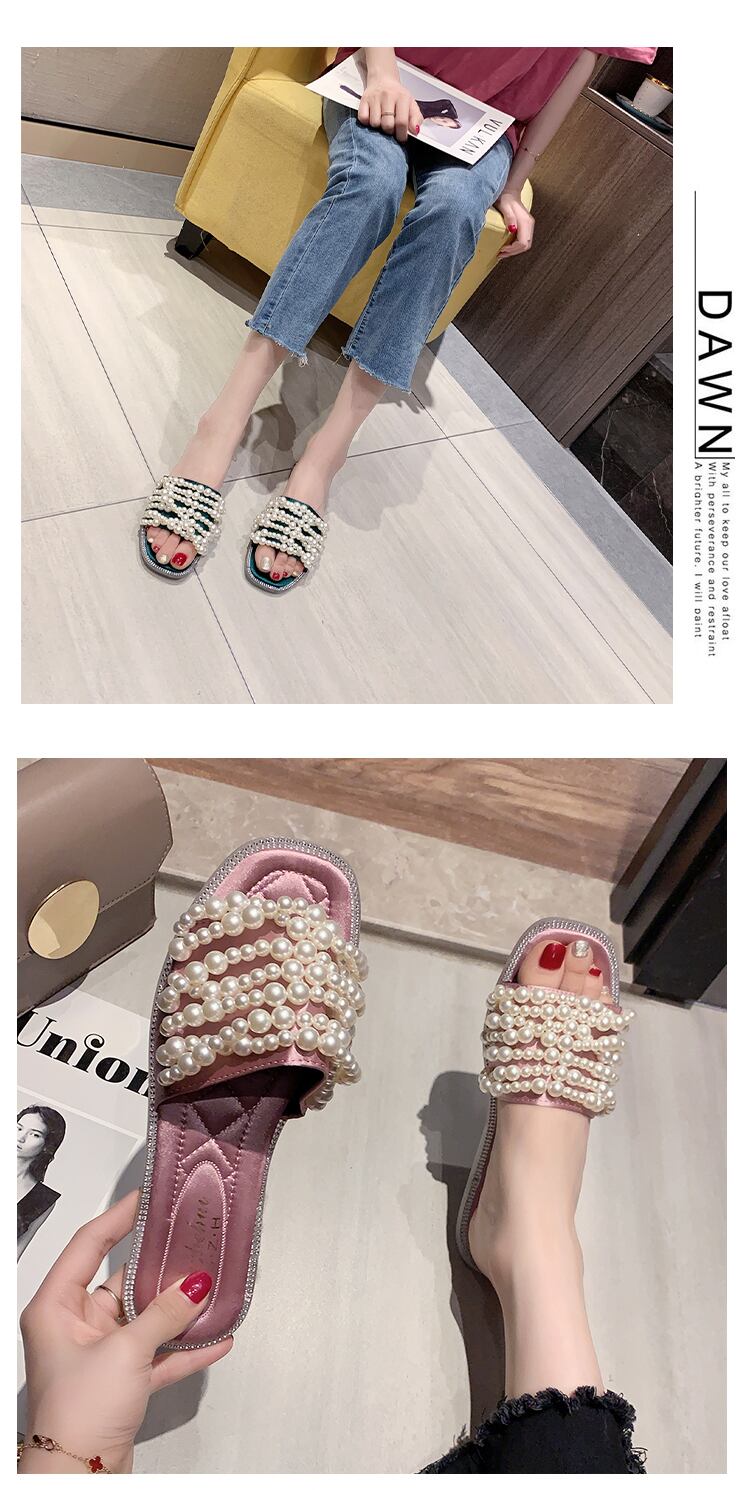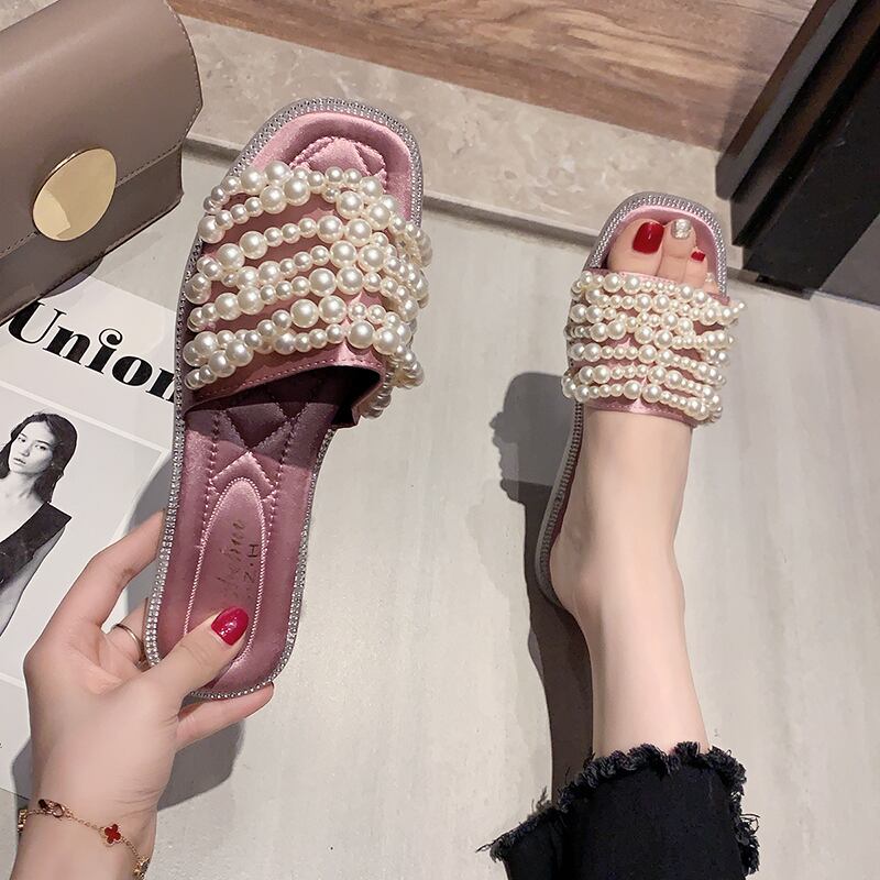 スリッパの女性は夏の2020年の新しい学生の野生のネット赤いオープントゥパールフラットボトムドラッグ女性を着用します 部族の婦人靴5657873