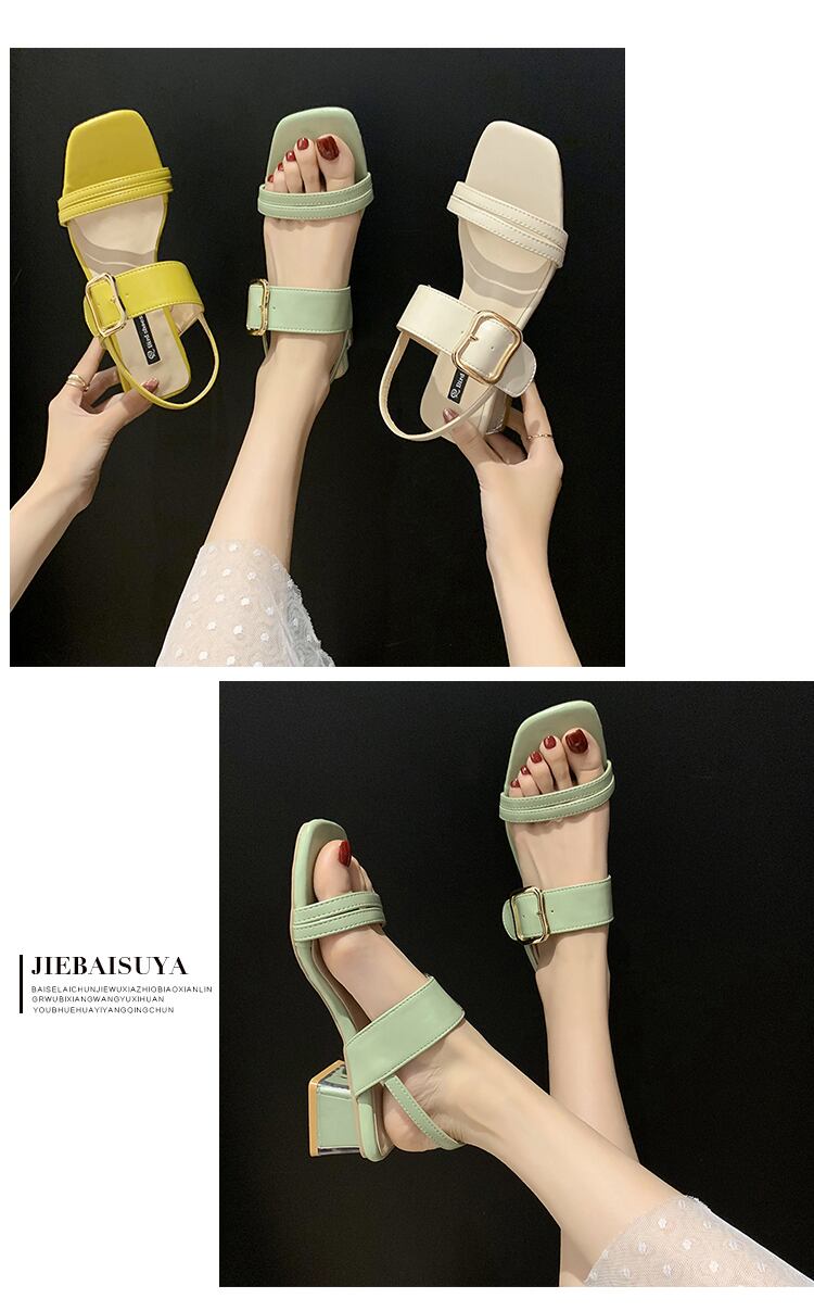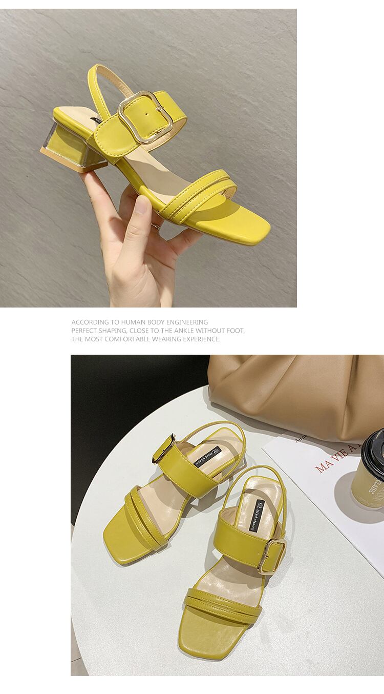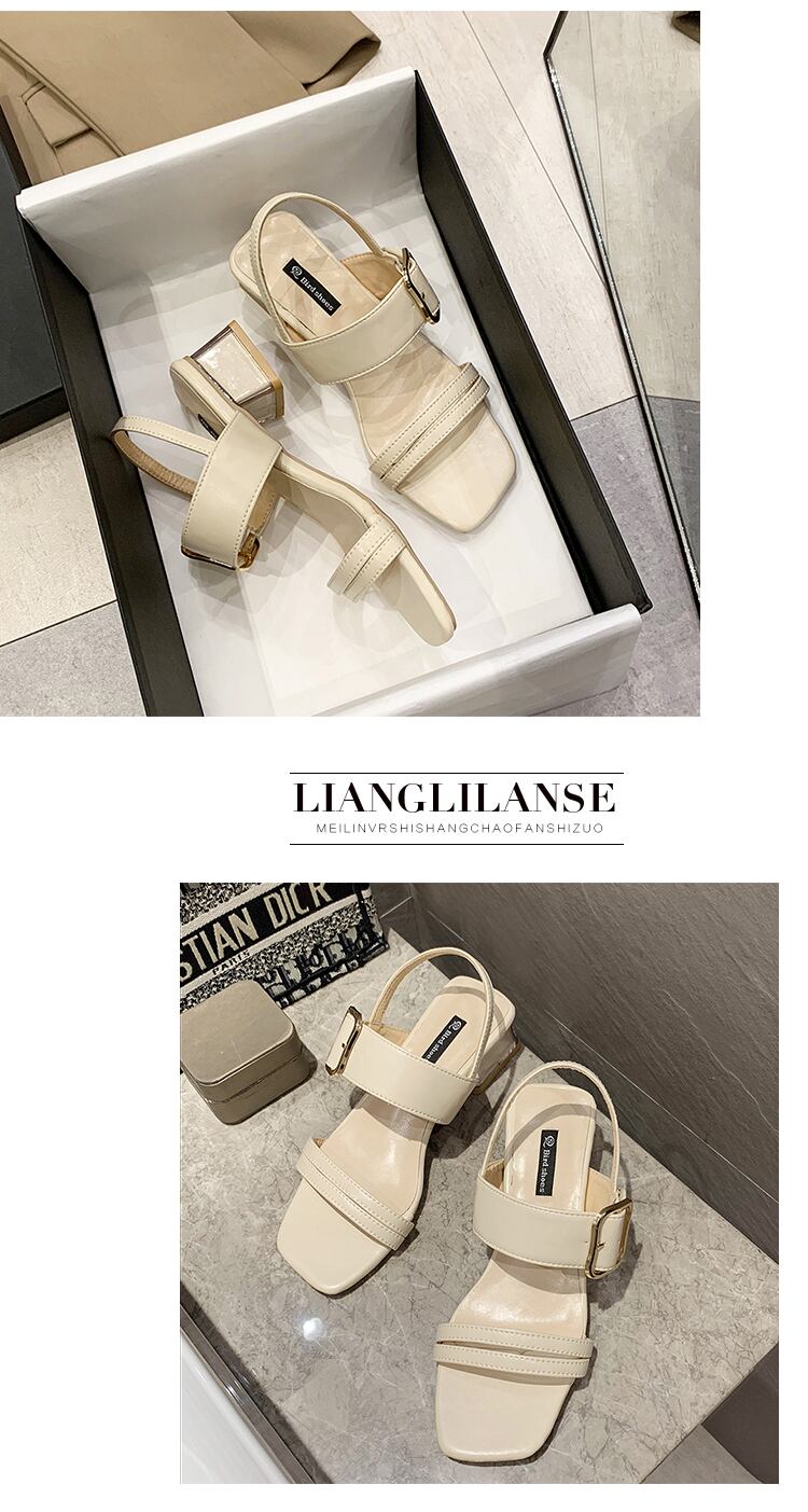 サンダル女性2020夏の新しいins学生野生の正方形の頭の厚い赤の赤い妖精スタイルローマの靴の女性 部族の婦人靴1347069