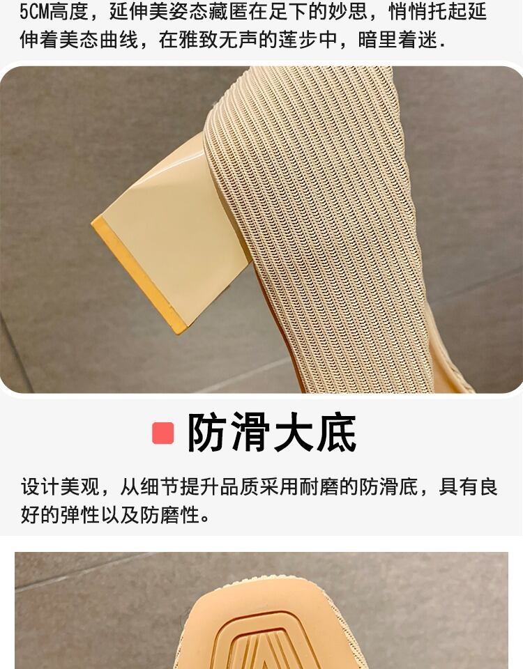 スクエアヘッドシングルシューズレディース2020春新しいファッションワイルドおばあちゃんシューズネットレッドイン浅い口厚いヒールエンドウシューズ 部族の婦人靴9814092
