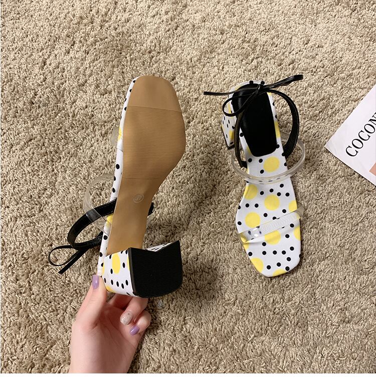 サンダル女性の厚いヒール2020新しい透明ベルトファッション野生のセクシーなバージョンの妖精風の弓ハイヒールの女性 部族の婦人靴0930876