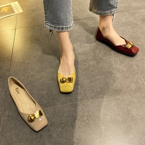 レディースシューズ2020年春新作シングルシューズレディースフラットボトム尖ったスクエアヘッドワンペダルワイルドソフトボトムシャローピーズレディースシューズ 部族の婦人靴3664013