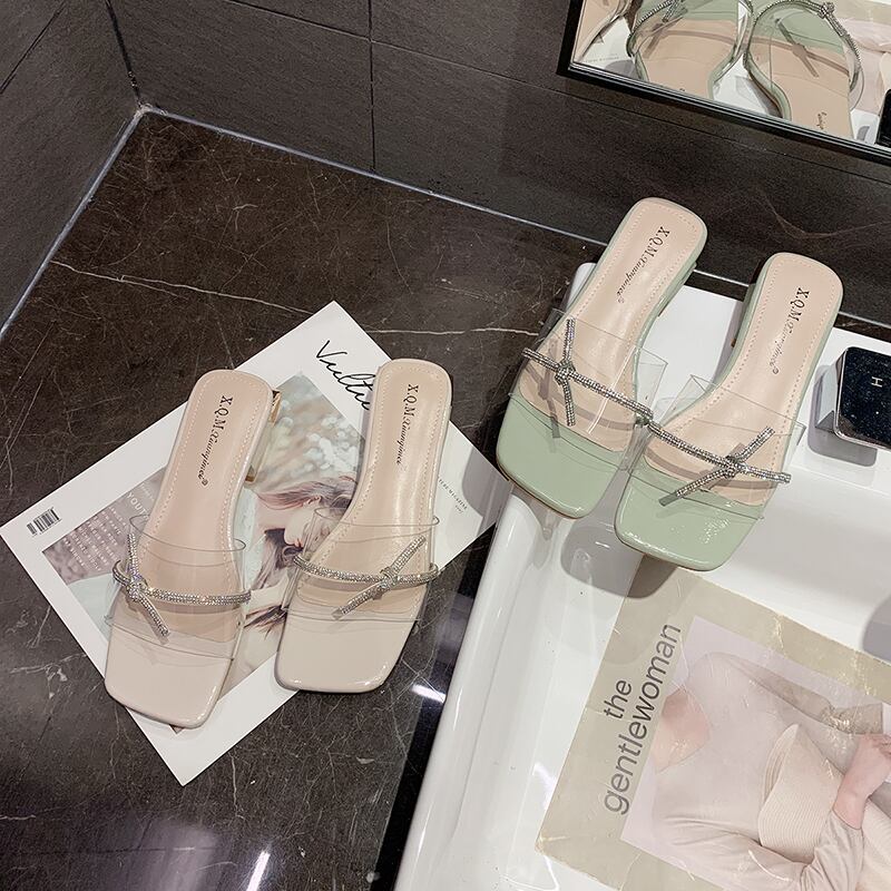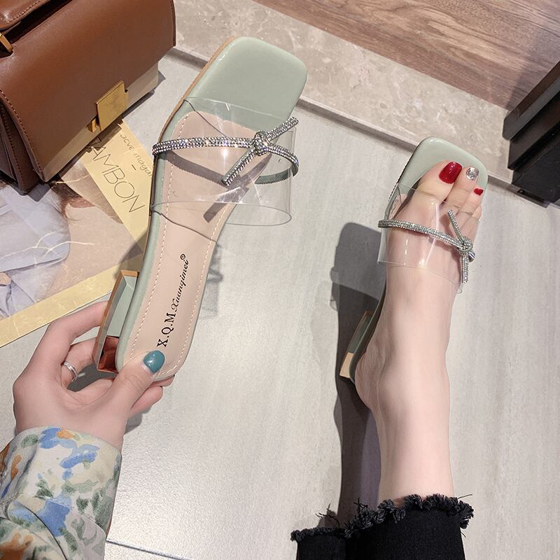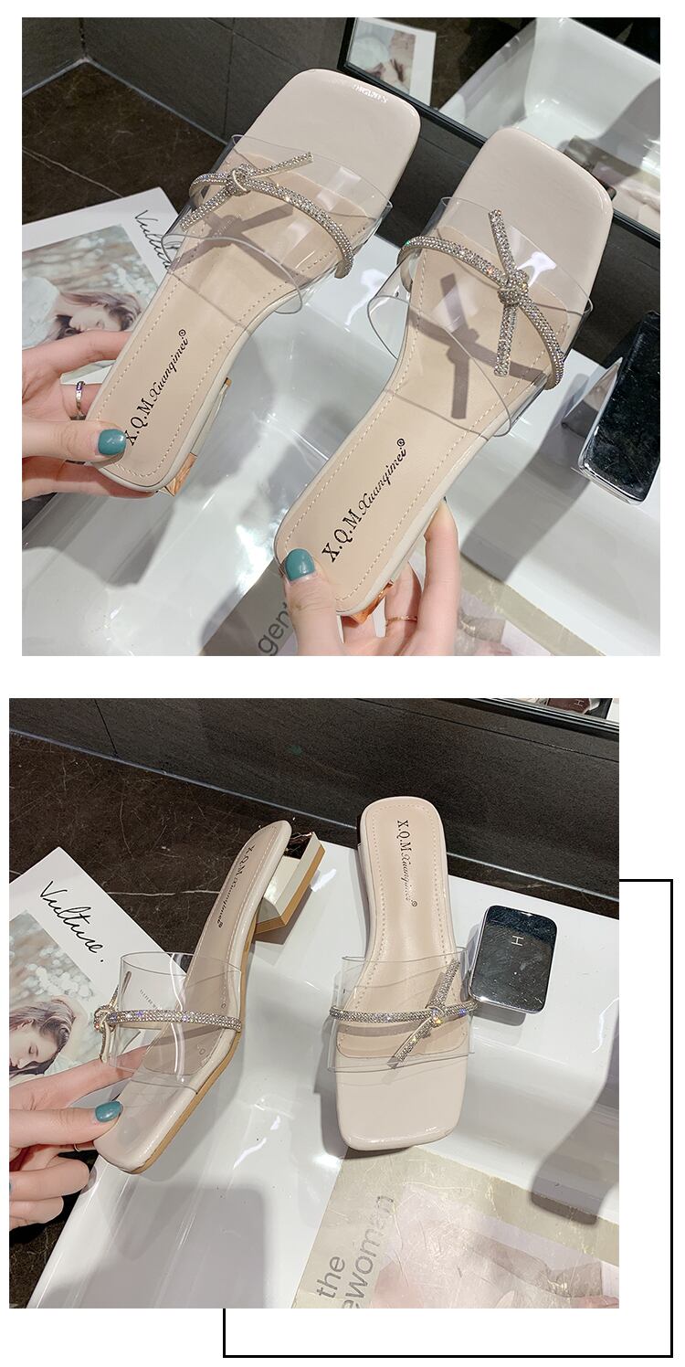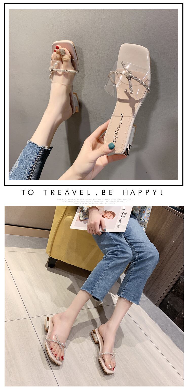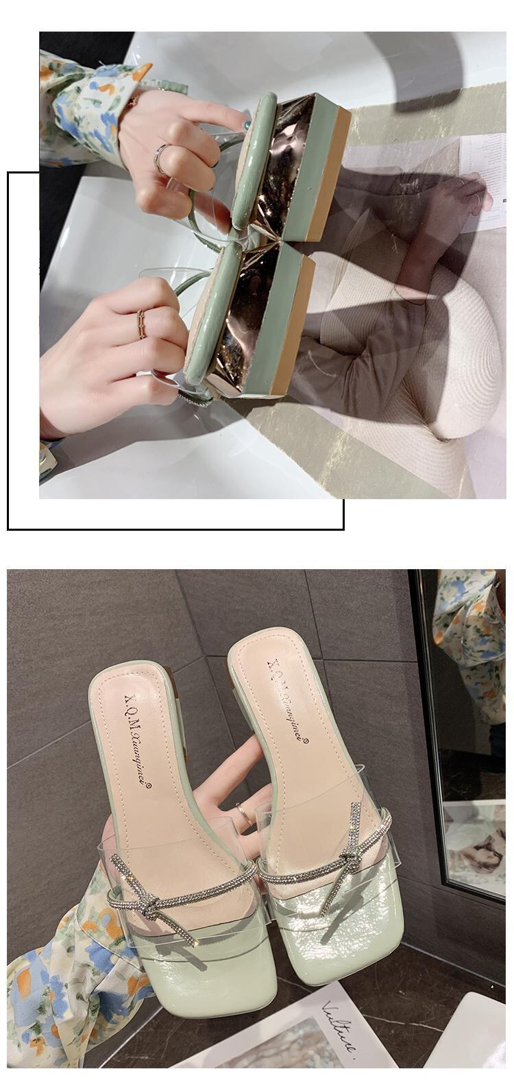 ネット赤いスリッパ女性のスーパーファイヤー2020春と夏の新しいカジュアル厚いヒールの透明なハイヒールのサンダルとスリッパ女性の摩耗ins 部族の婦人靴2220241
