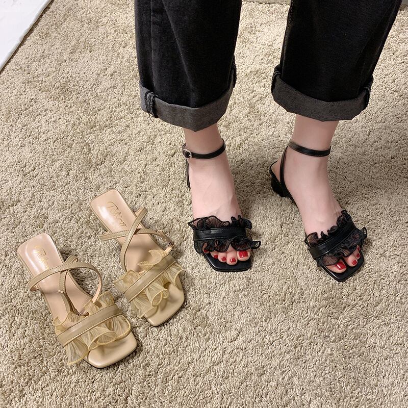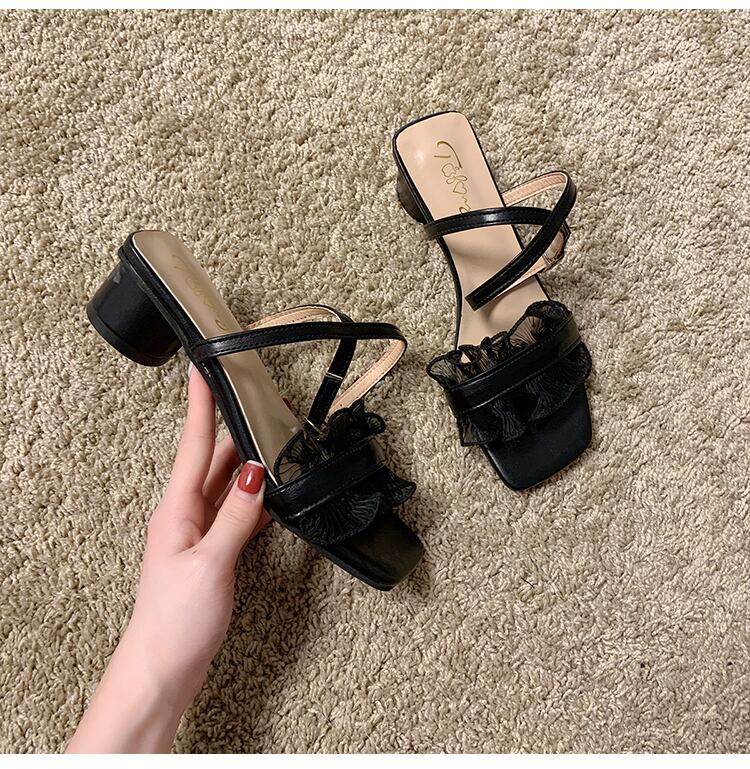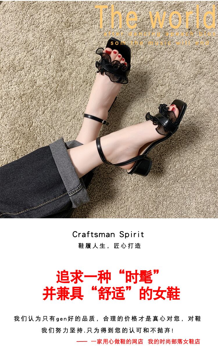 ヒールのサンダル女性の妖精の風2020夏の新しいファッションのレースは厚いヒールのローマの靴で女性の単語をストラップ 部族の婦人靴4440994