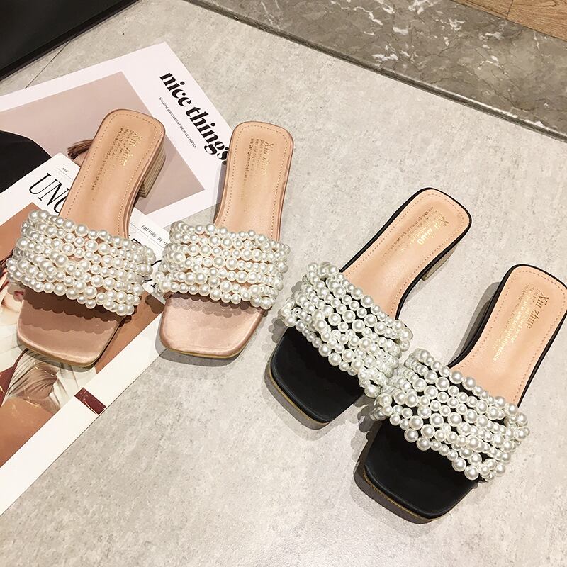 厚いサンダルとスリッパ女性の妖精の風2020夏の新しいファッション野生のオープントゥパールワードスリッパ潮 部族の婦人靴5152426