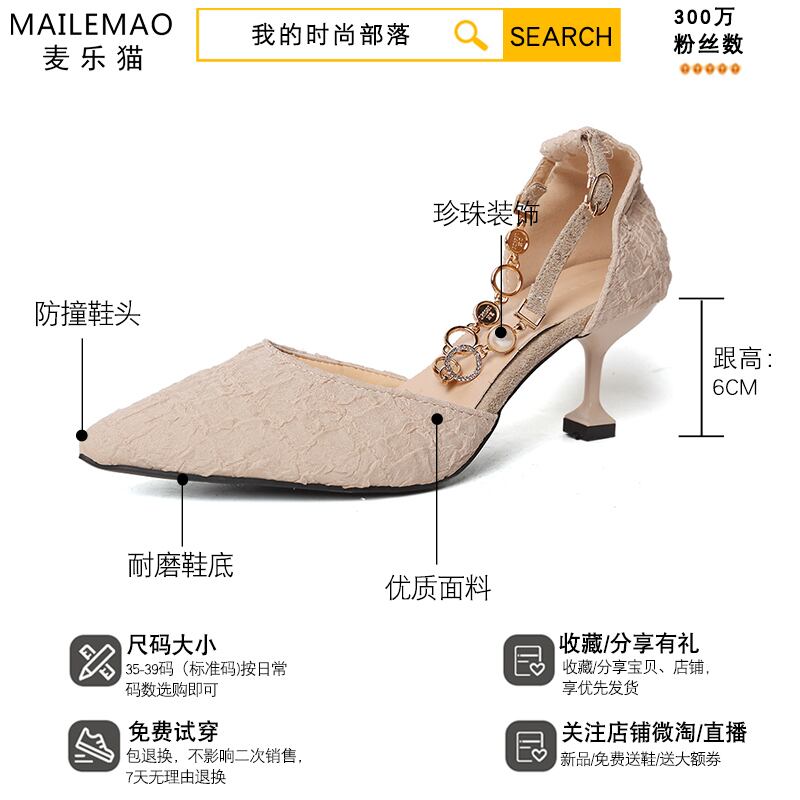 女性のかかとの高い靴夏2020新しいバージョンの先のとがった先のとがった浅い口ネット赤セクシーな包頭バックルサンダル女性 部族の婦人靴3959347