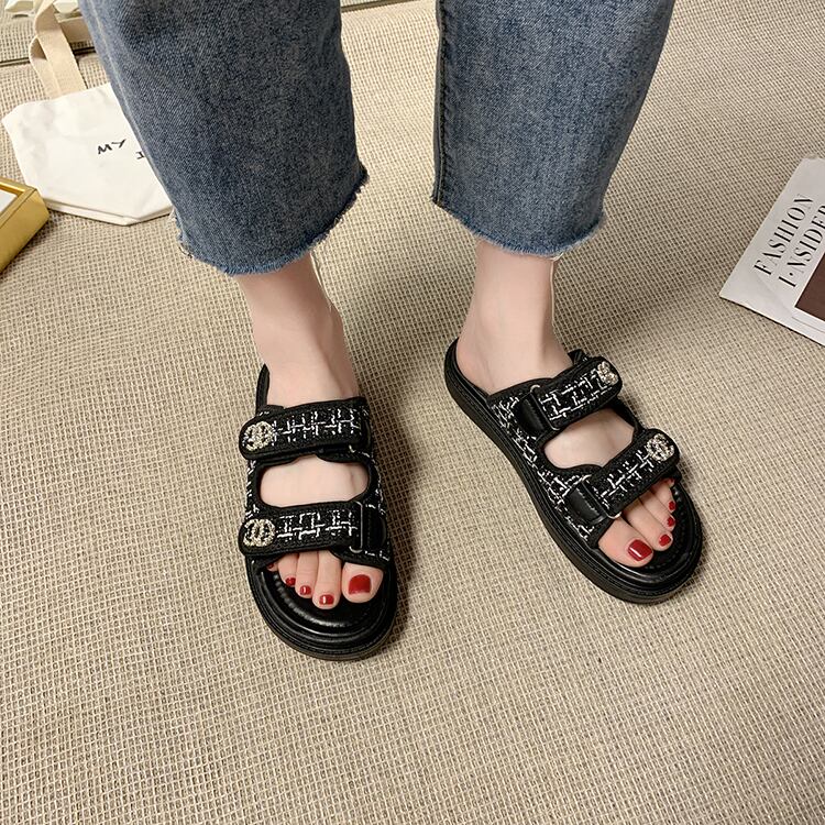 厚底サンダルとスリッパ女性2020年夏の新しいアウターファッションネット赤イン潮ベルクロフラットボトムスポーツワードドラッグ 部族の婦人靴3564163