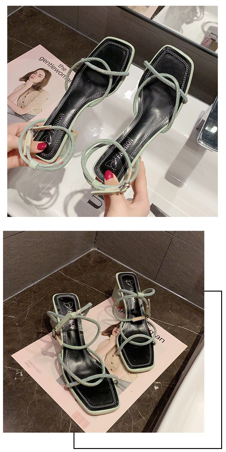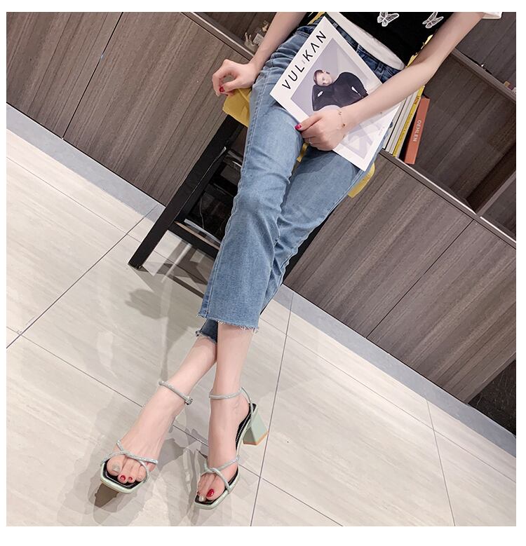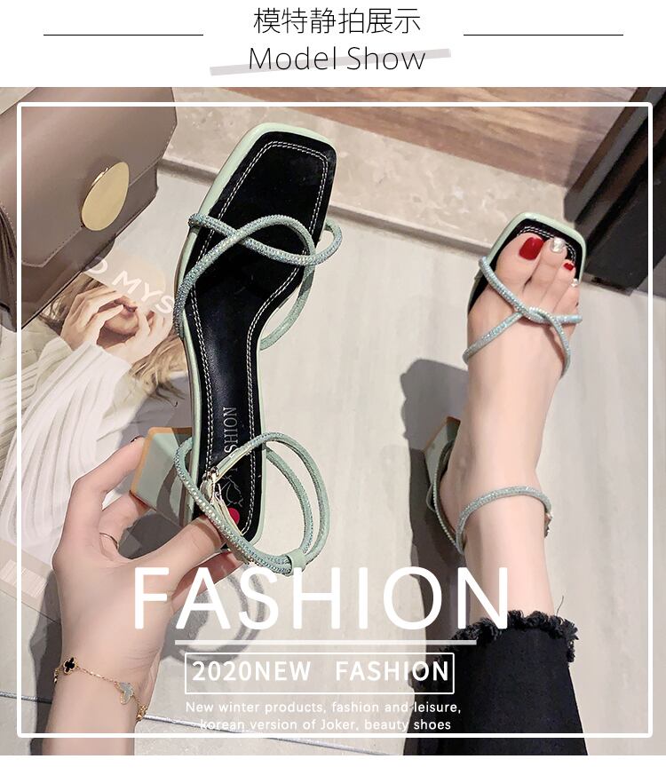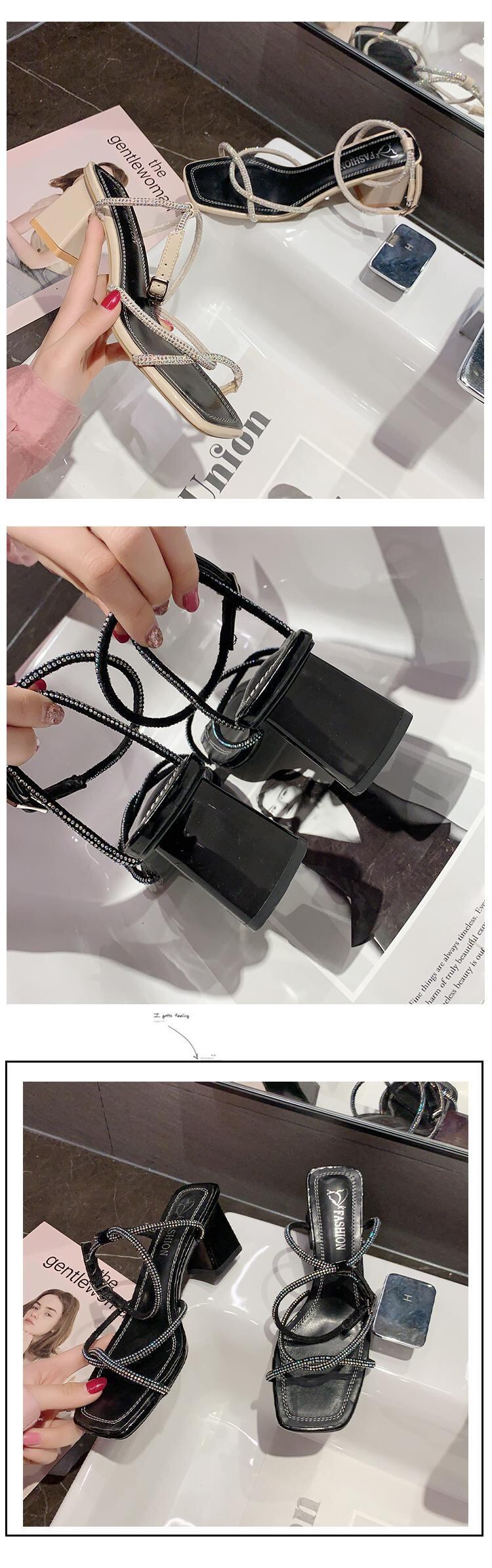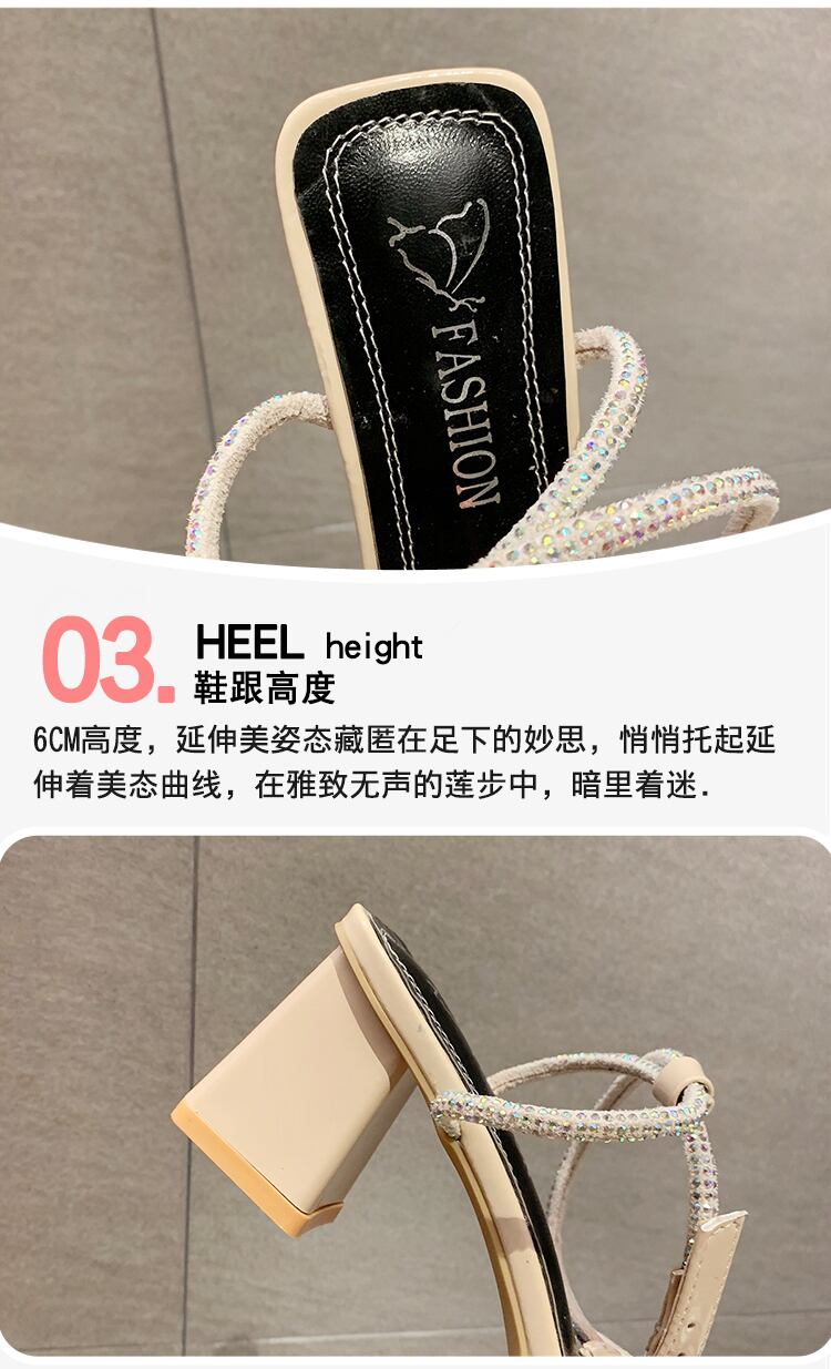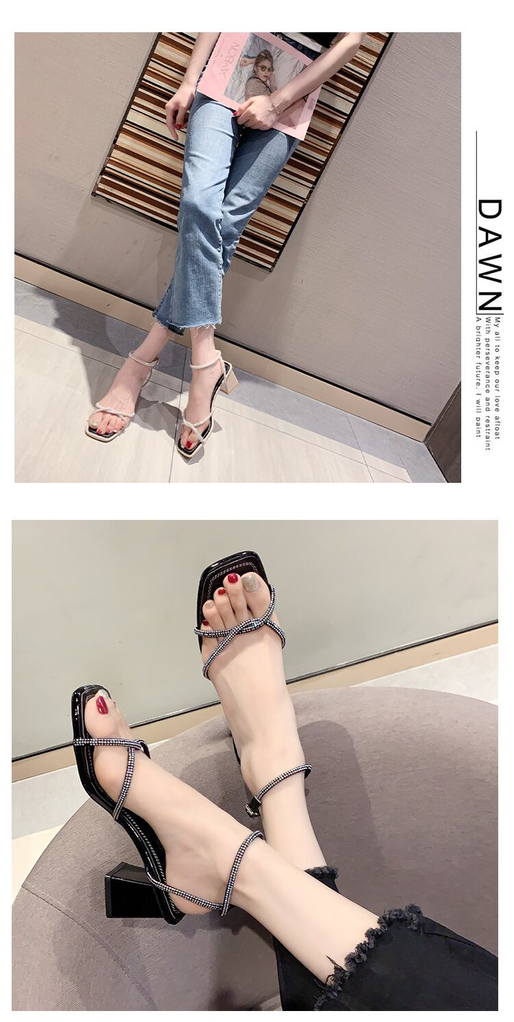 ローマのサンダル女性2020年夏の新しいバージョンのラインストーン野生のオープントゥセクシーなワードバックル分厚いヒール 部族の婦人靴9239380