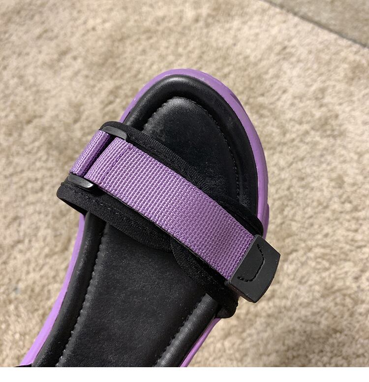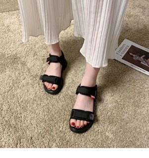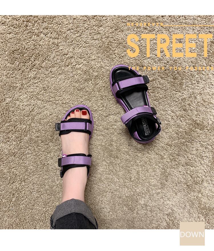 スポーツサンダル女性2020新しい夏のファッション野生のベルクロミッドヒールフラットシューズ厚底ビーチ学生の女性の靴 部族の婦人靴8318668