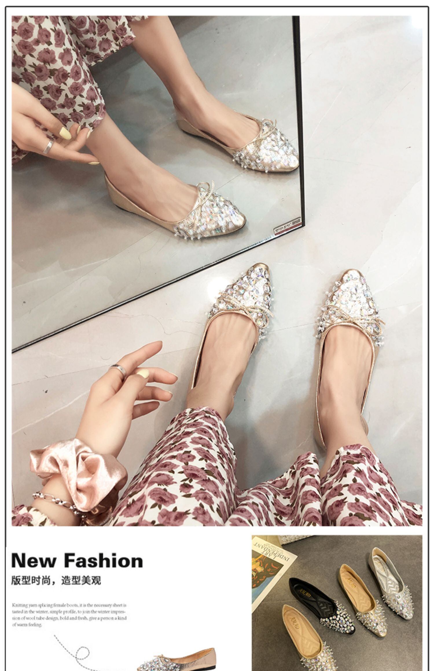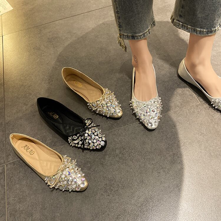 女性の靴ファッション野生のラインストーンネット赤い妖精の風はフラット浅い口の靴女性2020新しいおばあちゃんの靴を指摘しました 部族の婦人靴7032717