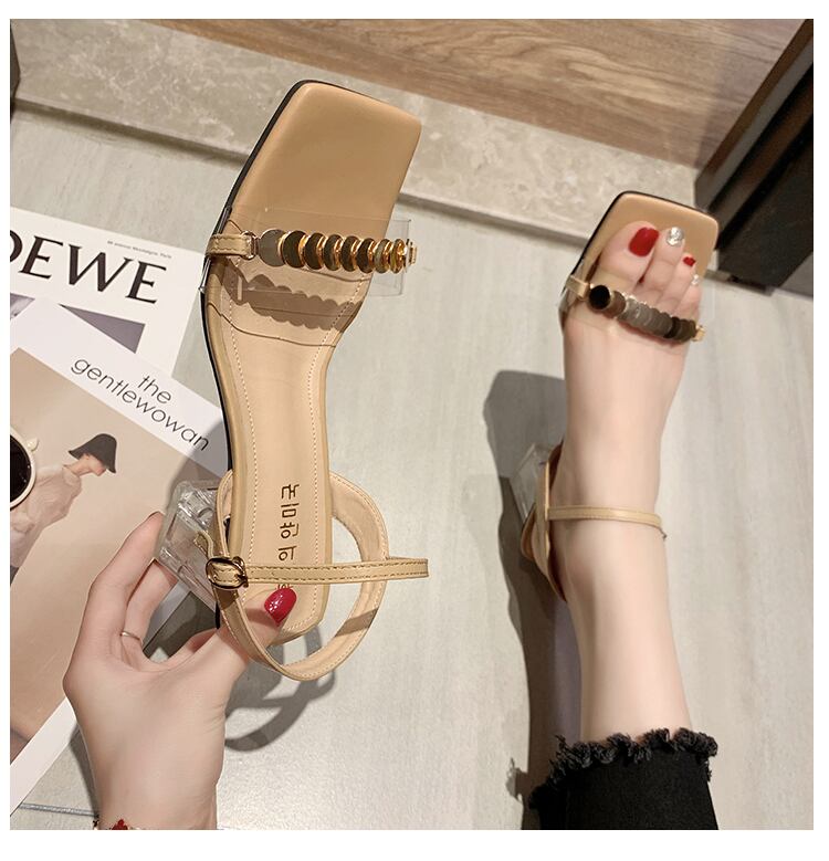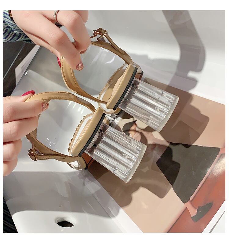 フレンチチャンキーヒールサンダル2020新しい夏のネット赤のファッション穏やかなハイヒールのローマの靴で妖精のスタイル 部族の婦人靴2759962