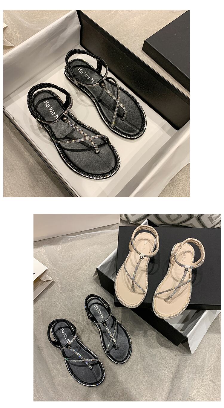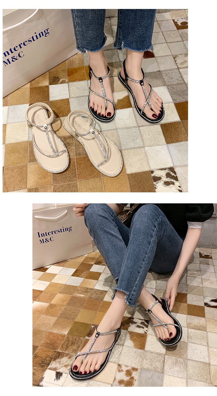 ネットレッドサンダル女性2020夏の新しいバージョンのラインストーンファッションワイルドワンペダルオープントゥフェアリースタイルローマンシューズ 部族の婦人靴3756435