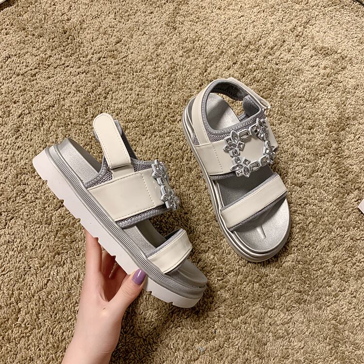 イン潮ファッションサンダル女性2020夏ベルクロ野生の厚い底スポーツ妖精スタイル小さな新鮮なフラットシューズ 部族の婦人靴4205215