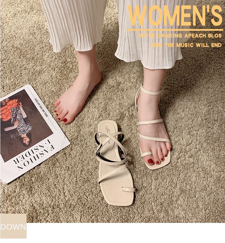 スカートサンダル夏レディースシューズ2020新しいファッションクロスローヒールクリップつま先厚くワイルドシンストラップローマンシューズ 部族の婦人靴3343365