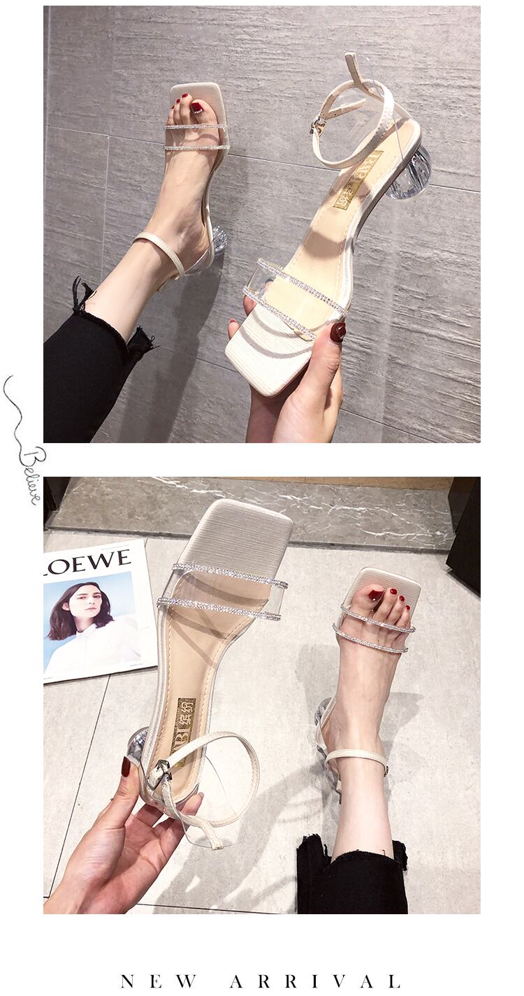 サンダル女性2020夏新バージョンスクエアヘッドファッションワイルドレディースオープントゥラインストーン厚いヒールローマの靴 部族の婦人靴9667038