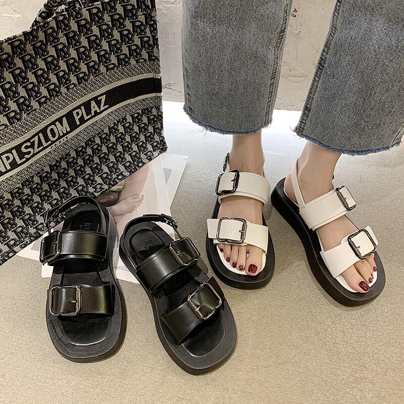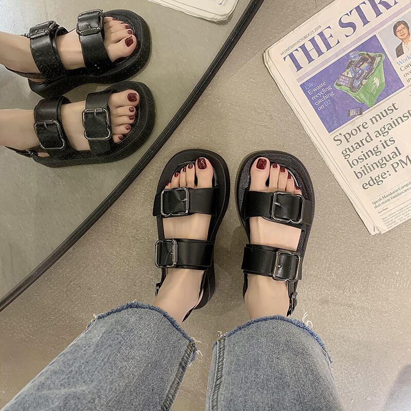 サンダル女性2020新しい夏のファッション野生ベルトバックルオープンつま先厚底ネット赤い妖精ローマの靴 部族の婦人靴1373173