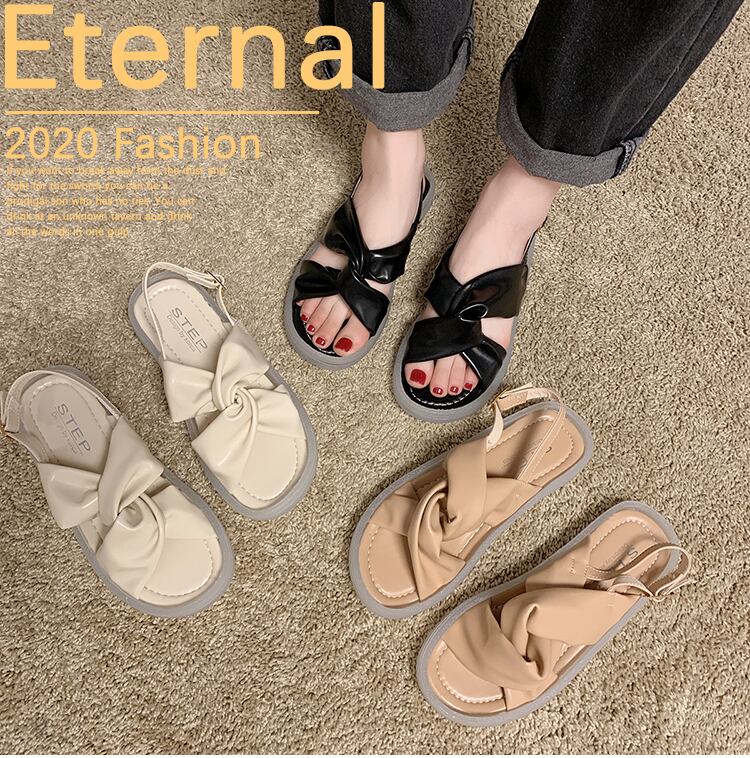 ネット赤いサンダル女性の夏2020新しいinsファッションオープンつま先フラットボトム野生の妖精スタイルローマの靴 部族の婦人靴6699167