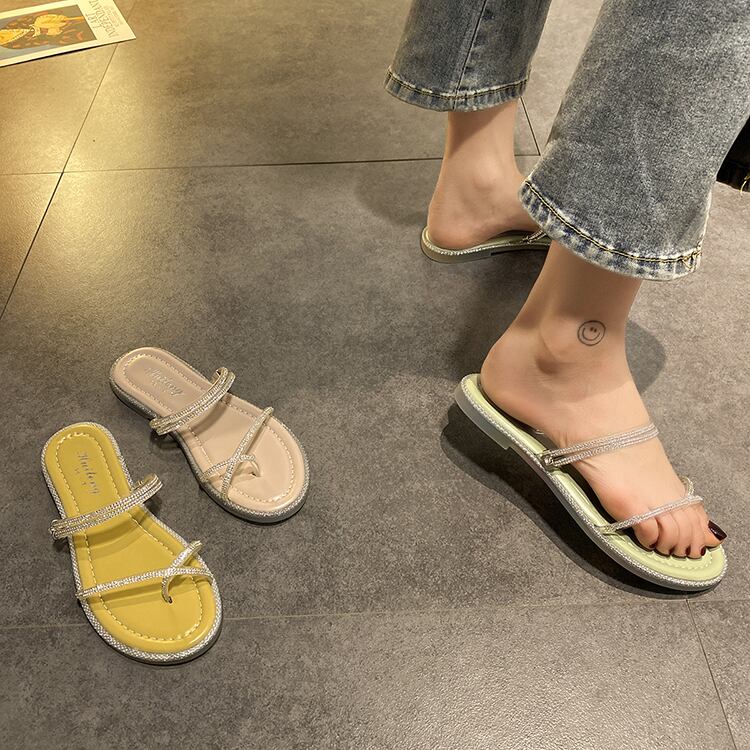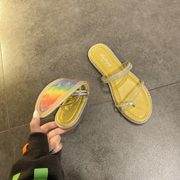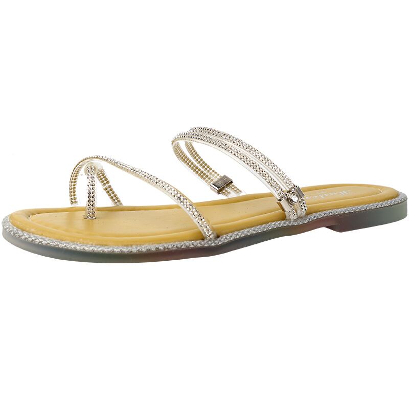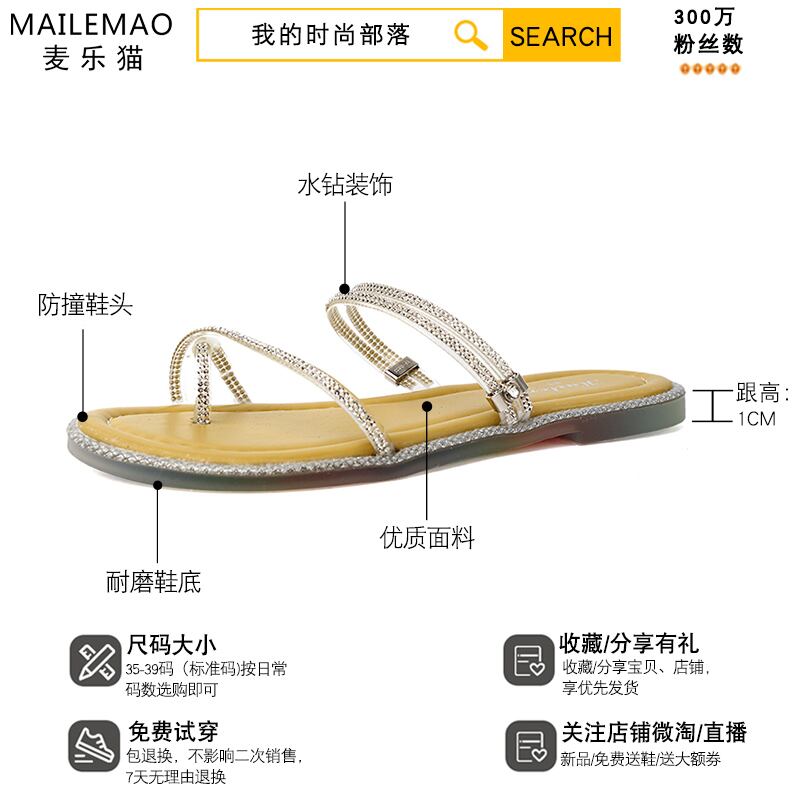 フリップフロップ女性insタイド夏の摩耗2020新しいラインストーンネット赤いファッションフラットボトムクリップつま先野生のビーチサンダル 部族の婦人靴8642358