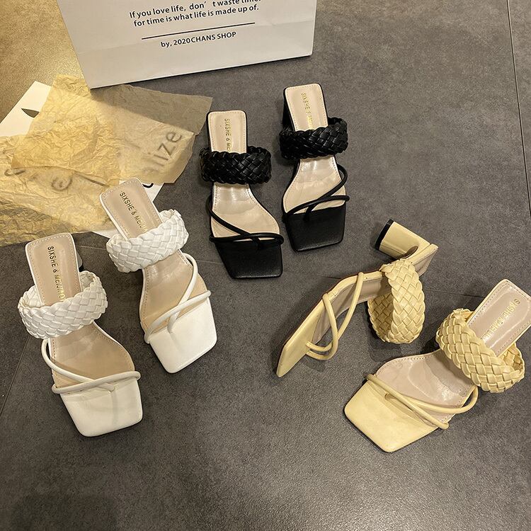 サンダルとスリッパの女性は2020年の新しい夏のinsの潮の靴ファッション野生の厚いハイヒールのオープントゥワードドラッグを着用します 部族の婦人靴1711718