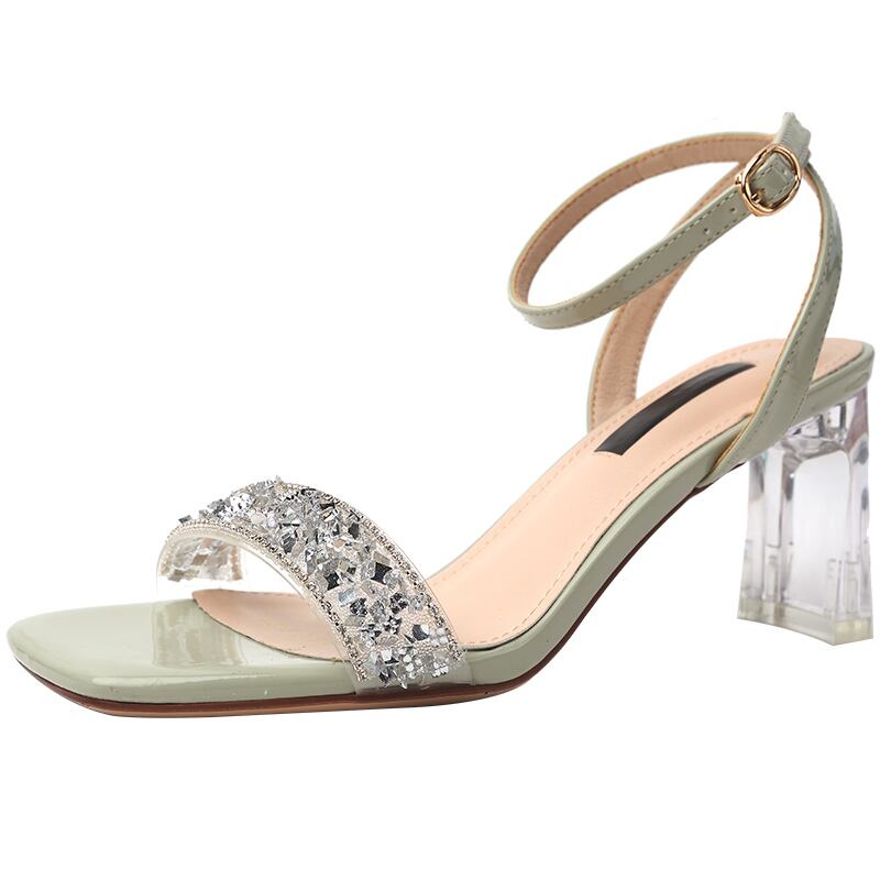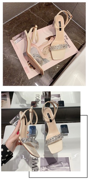 サンダル女性2020夏の新しいinsラインストーンメッシュ赤い妖精スタイルの厚いヒールバックルハイヒール 部族の婦人靴3854745