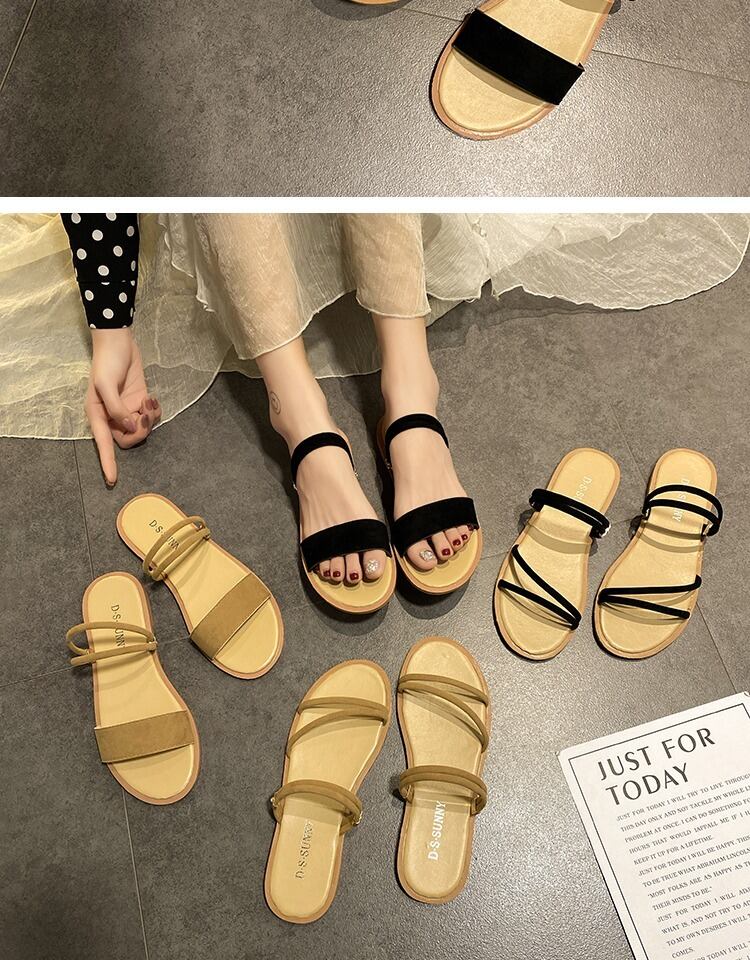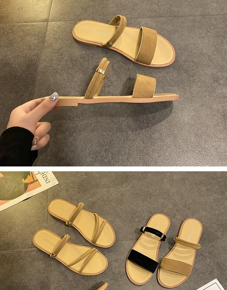 サンダル2020新しい女性の夏の足2足セットフレンチスリッパ女性のアウター摩耗学生フラットフラットサンダル 部族の婦人靴3763581