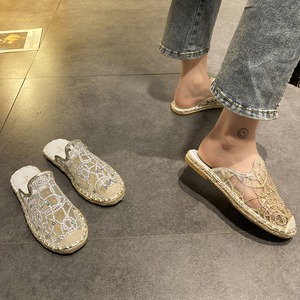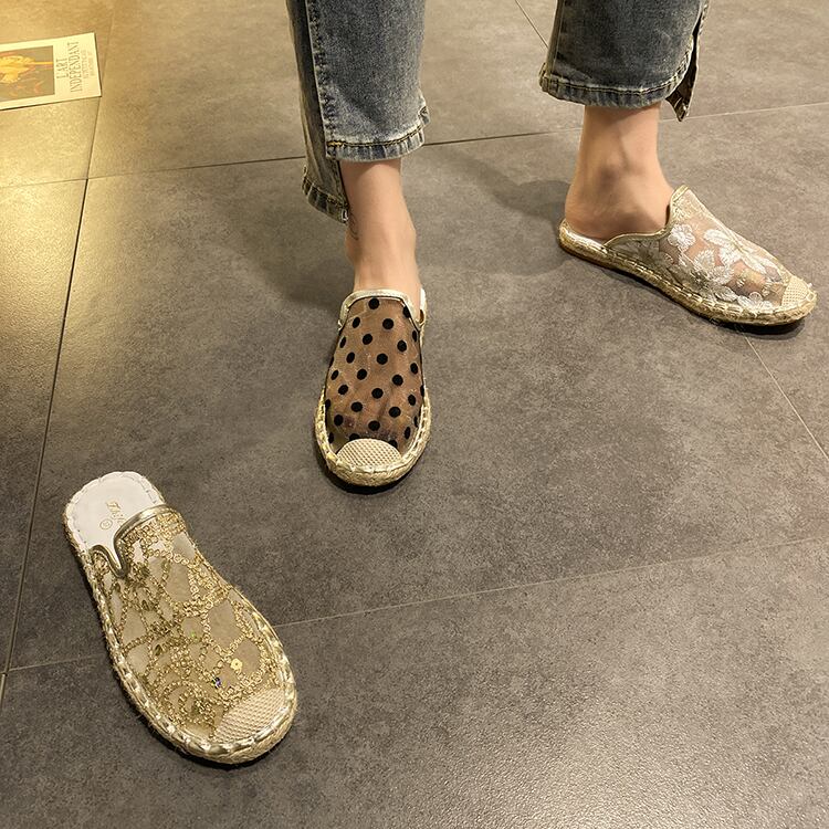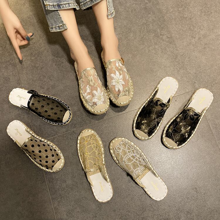 ネットレッドフラットボトム包頭ハーフスリッパ女性2020年新しいinsタイドバージョンのファッションカジュアルワイルドミュラーシューズ 部族の婦人靴8098794