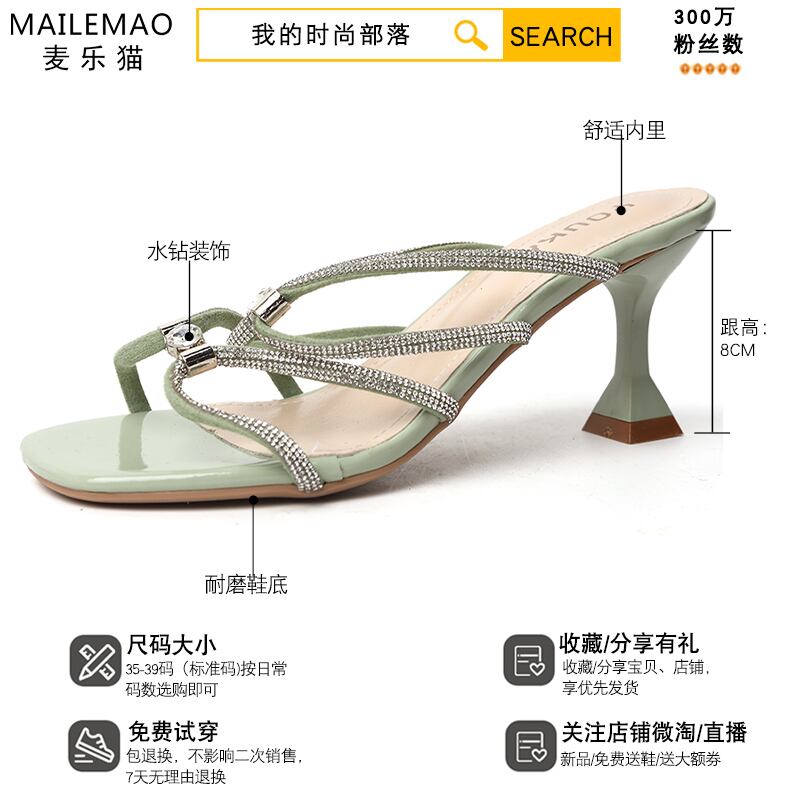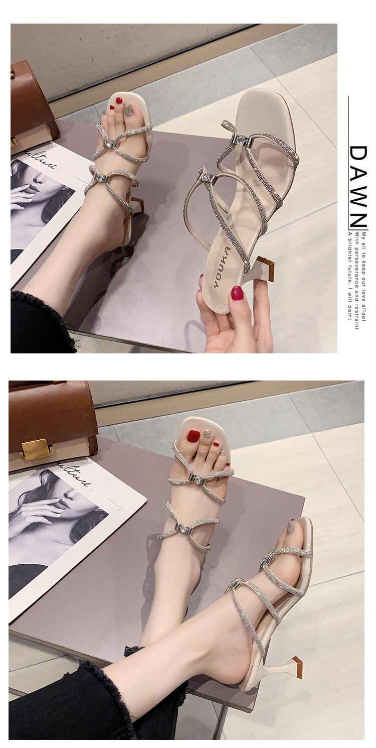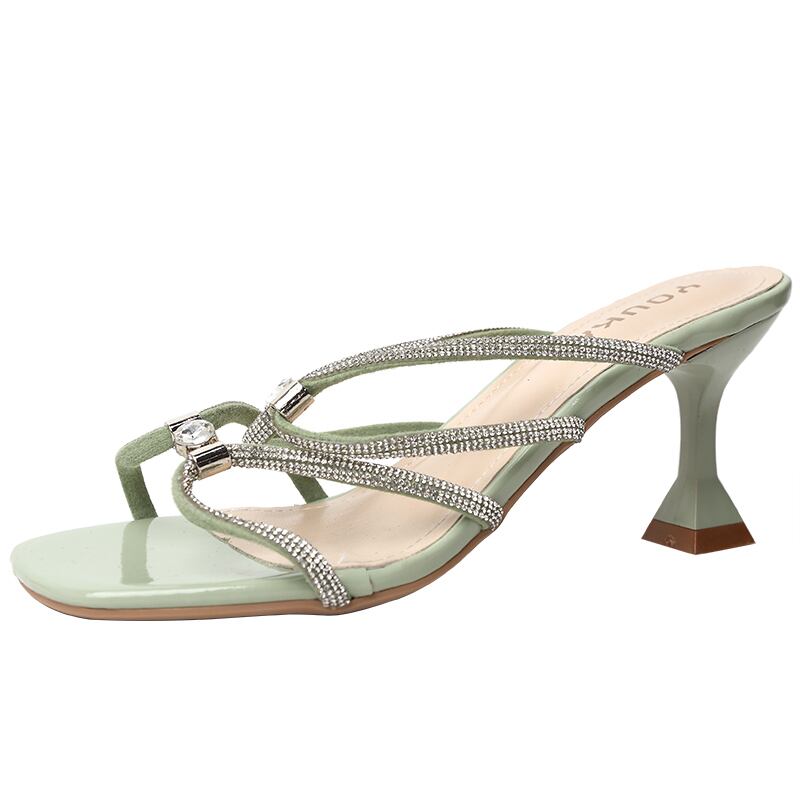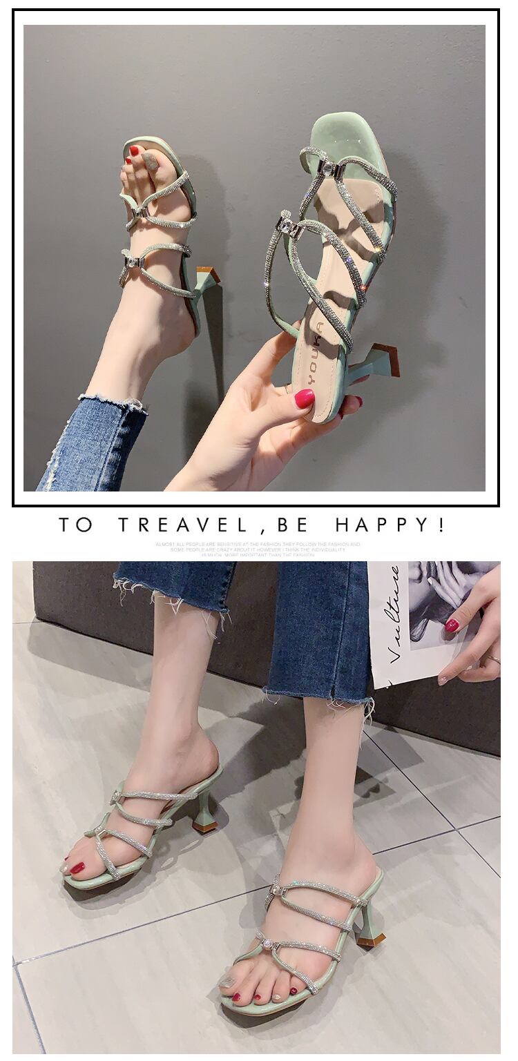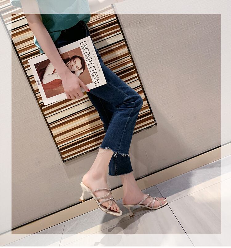 サンダルとスリッパレディースアウターウェア2020新しい夏オールマッチファッションラインストーンストラップスリッパカバースティレットレイジーシューズ 部族の婦人靴8823469