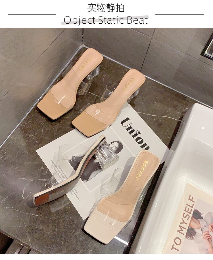 純赤のスリッパ2020新しい女性の夏のファッション野生のオープンつま先透明ハイヒール厚いヒールサンダル 部族の婦人靴8345844