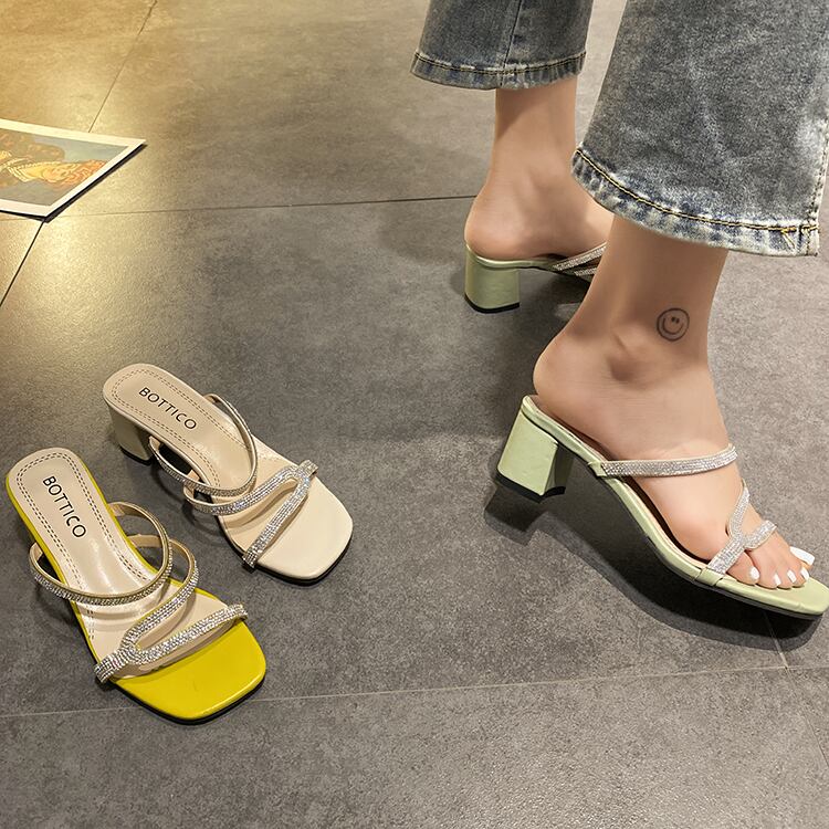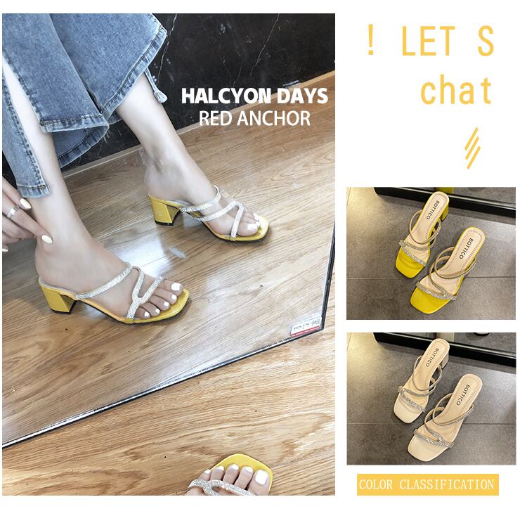 サンダルとスリッパの女性は2020の新しいフェアリースタイルの厚いラインストーンセットの足ネット赤ファッション野生ハイヒール女性スリッパを着用します。 部族の婦人靴2431145